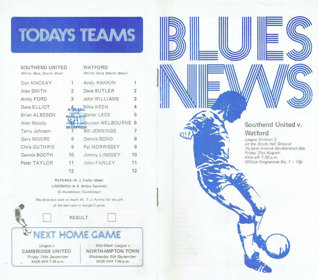 31st August 1973- Division Three, Southend United 2 Watford 3 Leave a Reply http://watford.fcdb.info?id=2980 Daily Telegraph, 1 Sep 1973 Watford Observer match report Share this: Click to share on X (Opens in new window) X Click to share on Facebook (Opens in new window) Facebook