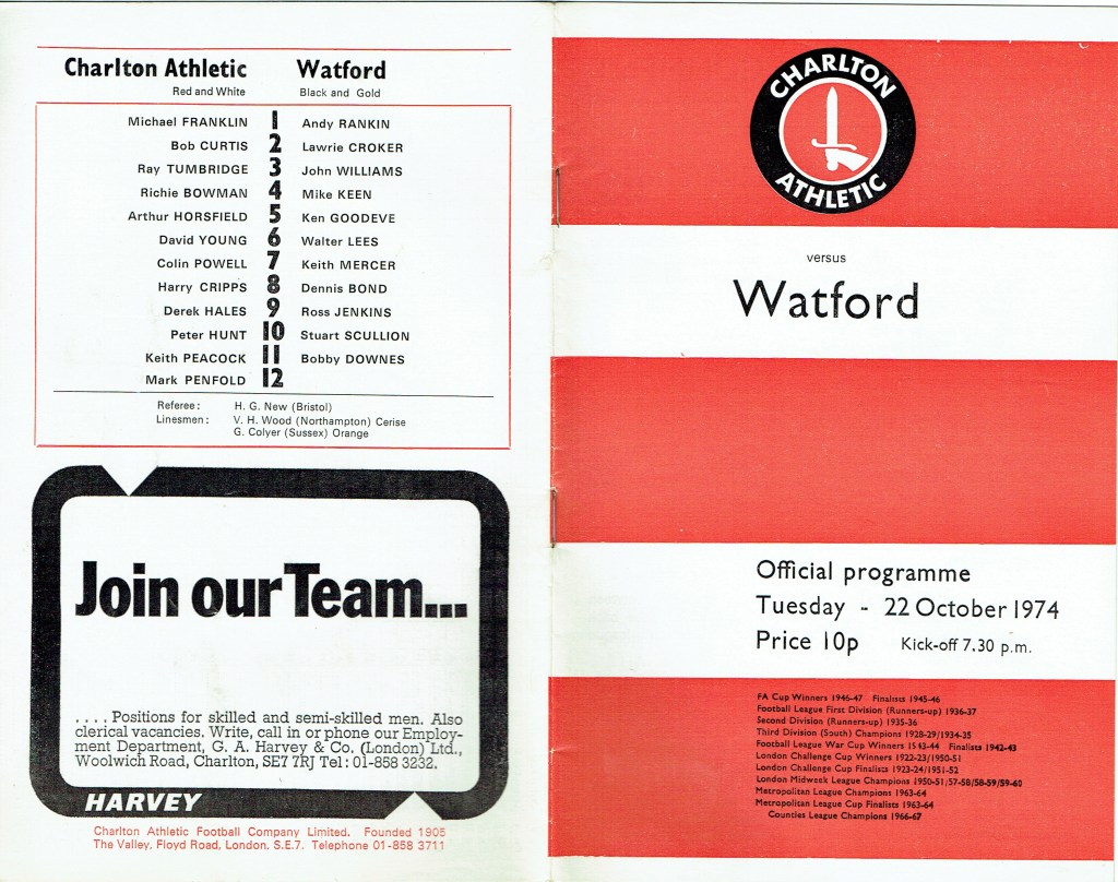 22nd October 1974- Division Three, Charlton Athletic 4 Watford 1 Leave a Reply http://watford.fcdb.info?s=33204&id=3044 Daily Telegraph, 23 Oct 1974 Watford Observer match report Share this: Share on X (Opens in new window) X Share on Facebook (Opens in new window) Facebook