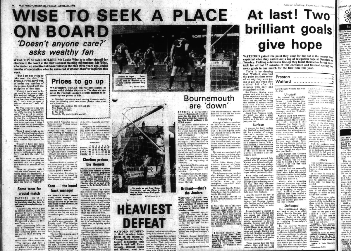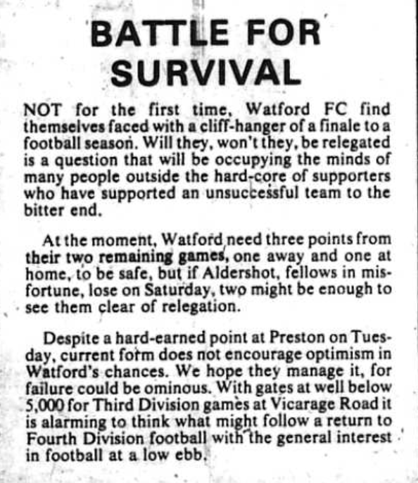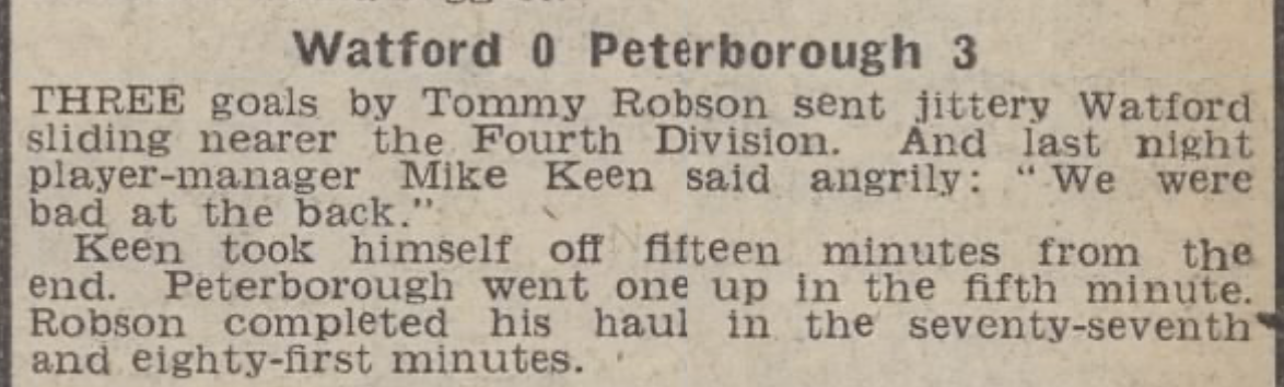 This result confirmed our relegation to Division Four.
