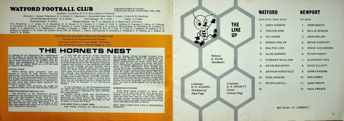 20th December 1975- Division Four, Watford 3 Newport County 1 https://watford.fcdb.info/index.php?page=matches Programme images courtesy of Matt Hall Sunday People, 21 Dec 1975 Sunday Mirror, 21 Dec 1975 Watford Observer match report Sunday Telegraph, 21 Dec 1975 Share this: Share on X (Opens in new window) X Share on Facebook (Opens in new window) Facebook