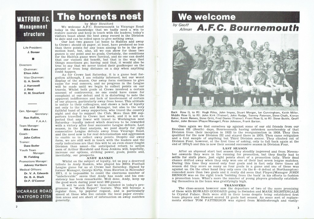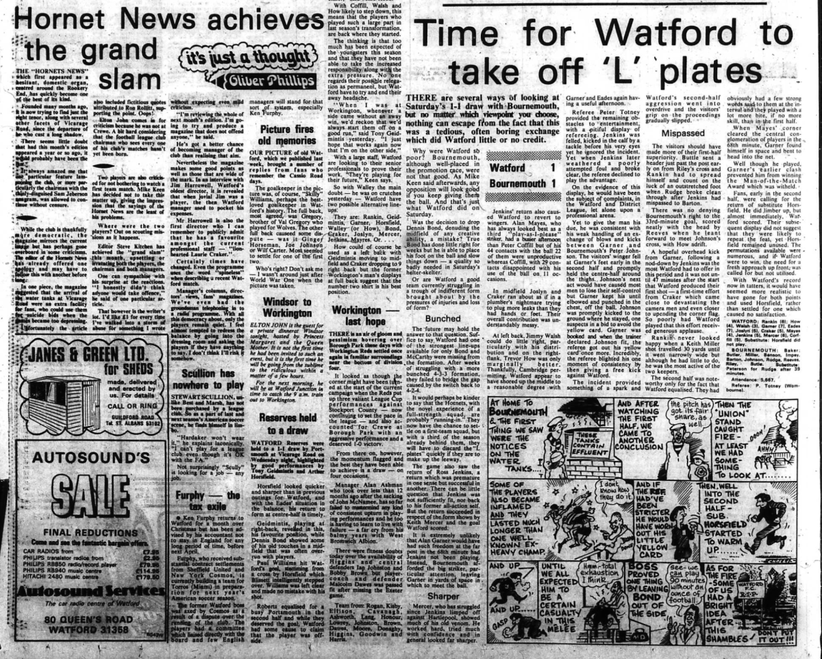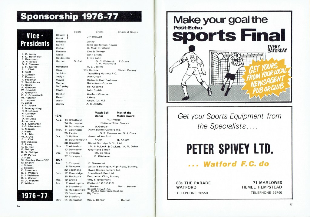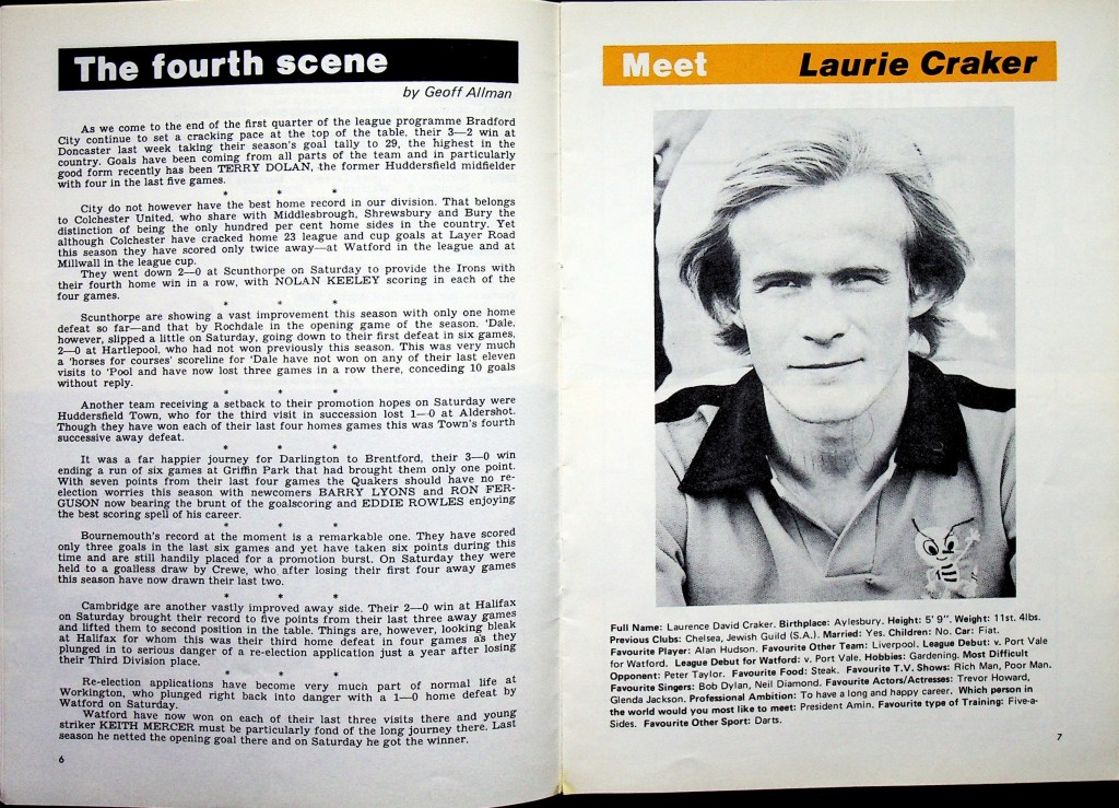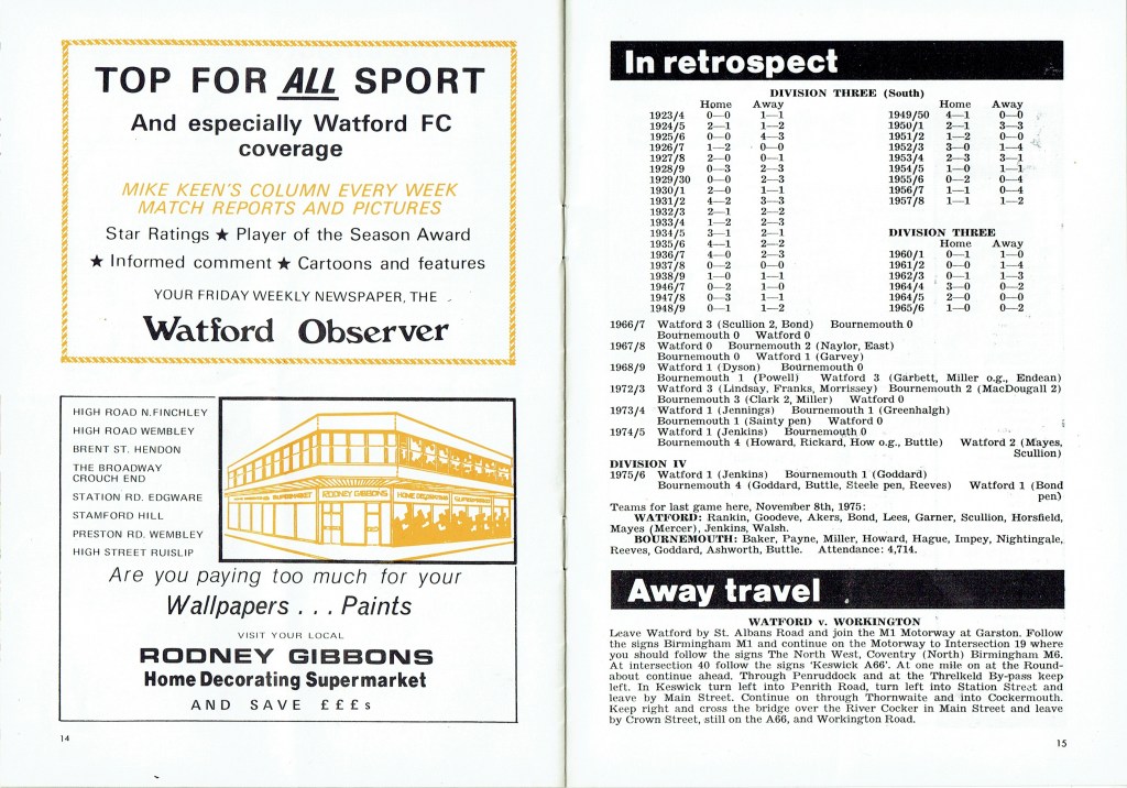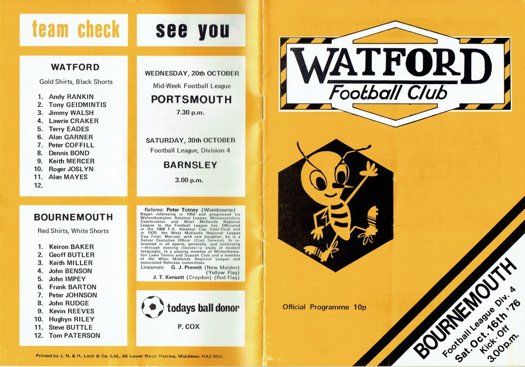 16th October 1976- Division Four, Watford 1 AFC Bournemouth 1 Leave a Reply http://watford.fcdb.info?s=31974&id=3140 Sunday People, 17 Oct 1976 Watford Observer match report Share this: Share on X (Opens in new window) X Share on Facebook (Opens in new window) Facebook