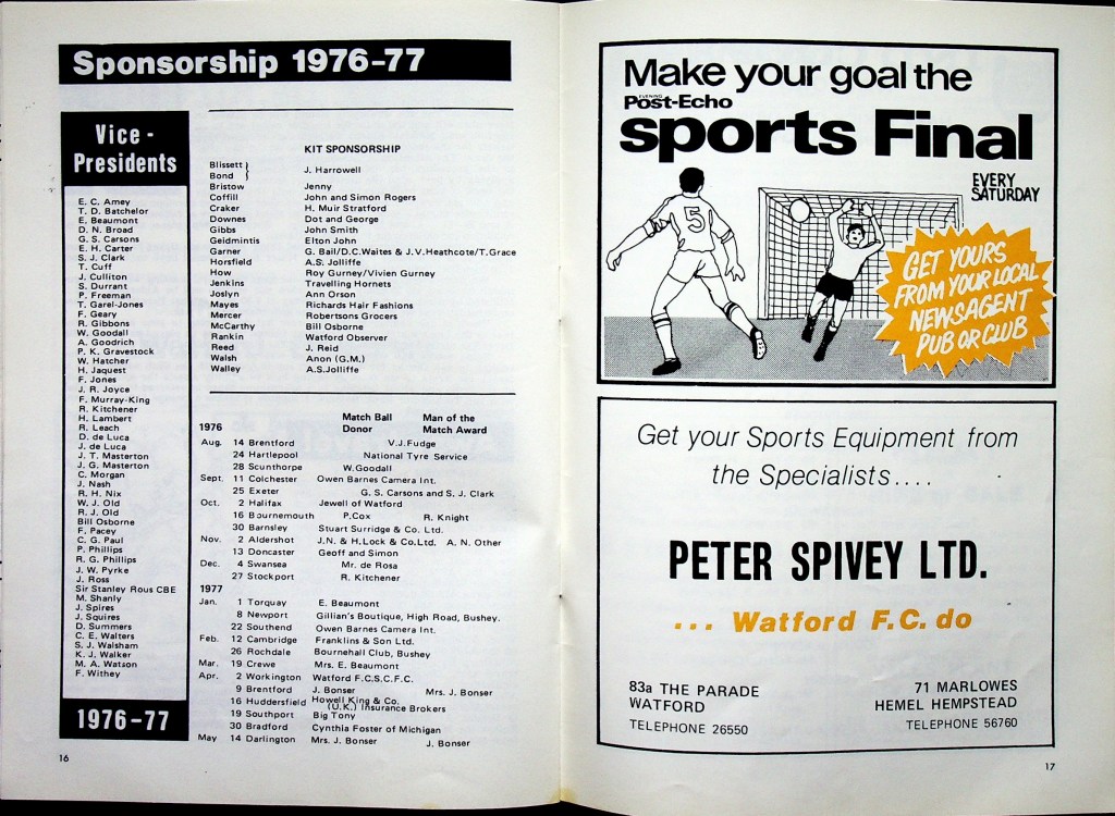 23 October 1976- Division Four, Workington 0 Watford 1 https://watford.fcdb.info/index.php?page=matches Evening News and Star, 23 Oct 1976 Sunday People, 24 Oct 1976 Sunday Mirror, 24 Oct 1976 Watford Observer match report Sunday Telegraph, 24 Oct 1976 Share this: Share on X (Opens in new window) X Share on Facebook (Opens in new window) Facebook