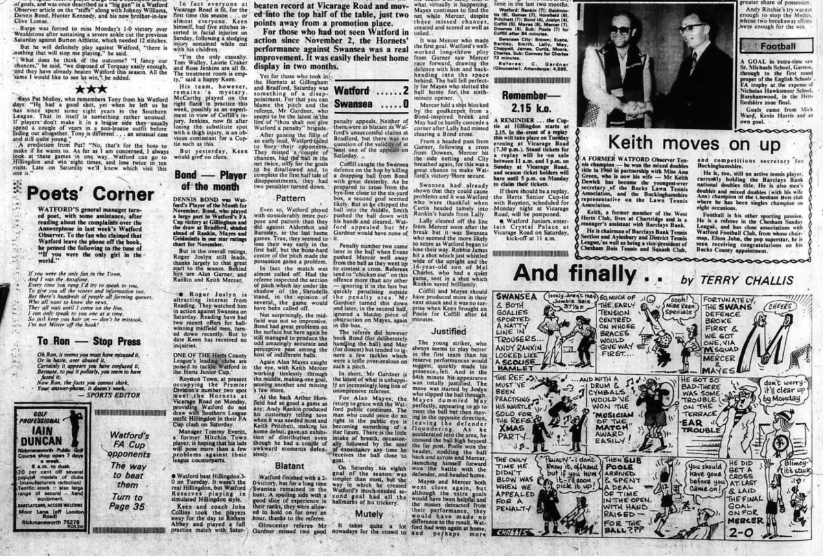 4th December 1976- Division Four, Watford 2 Swansea City 0 Leave a Reply http://watford.fcdb.info?s=41418&id=3148 Sunday People,5 Dec 1975 Share this: Share on X (Opens in new window) X Share on Facebook (Opens in new window) Facebook