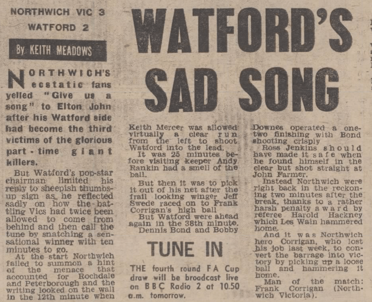 8th January 1977- FA Cup Third Round, Northwich Victoria 3 Watford 2