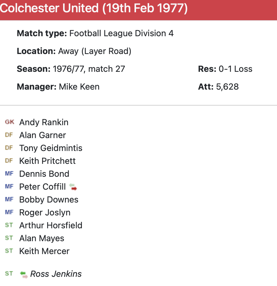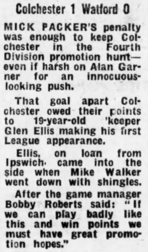19th February 1977- Division Four, Colchester United 1 Watford 0 https://watford.fcdb.info/index.php?page=matches Sunday Mirror, 20 Feb 1977 Sunday People, 20 Feb 1977 Watford Observer match report Sunday Telegraph, 20 Feb 1977 Share this: Share on X (Opens in new window) X Share on Facebook (Opens in new window) Facebook