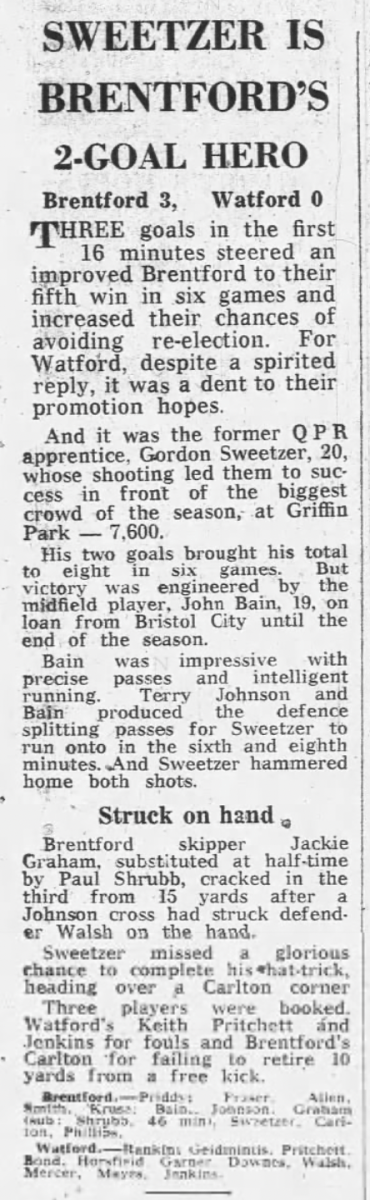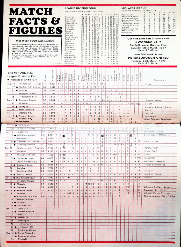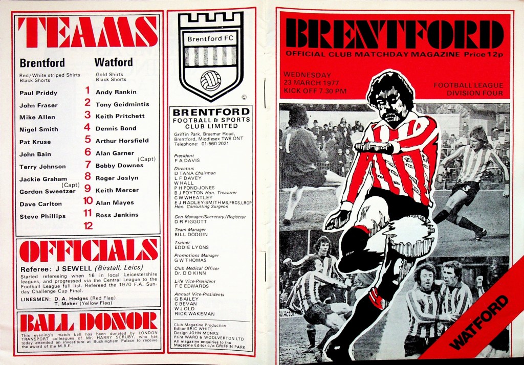 23rd March 1977- Division Four, Brentford 3 Watford 0 Leave a Reply http://watford.fcdb.info?id=3166 Daily Telegraph, 24 Mar 1977 Watford Observer match report https://www.soccerbase.com/matches/results.sd?date=1977-03-23 https://www.11v11.com/league-tables/league-division-four/23-march-1977/ Share this: Share on X (Opens in new window) X Share on Facebook (Opens in new window) Facebook