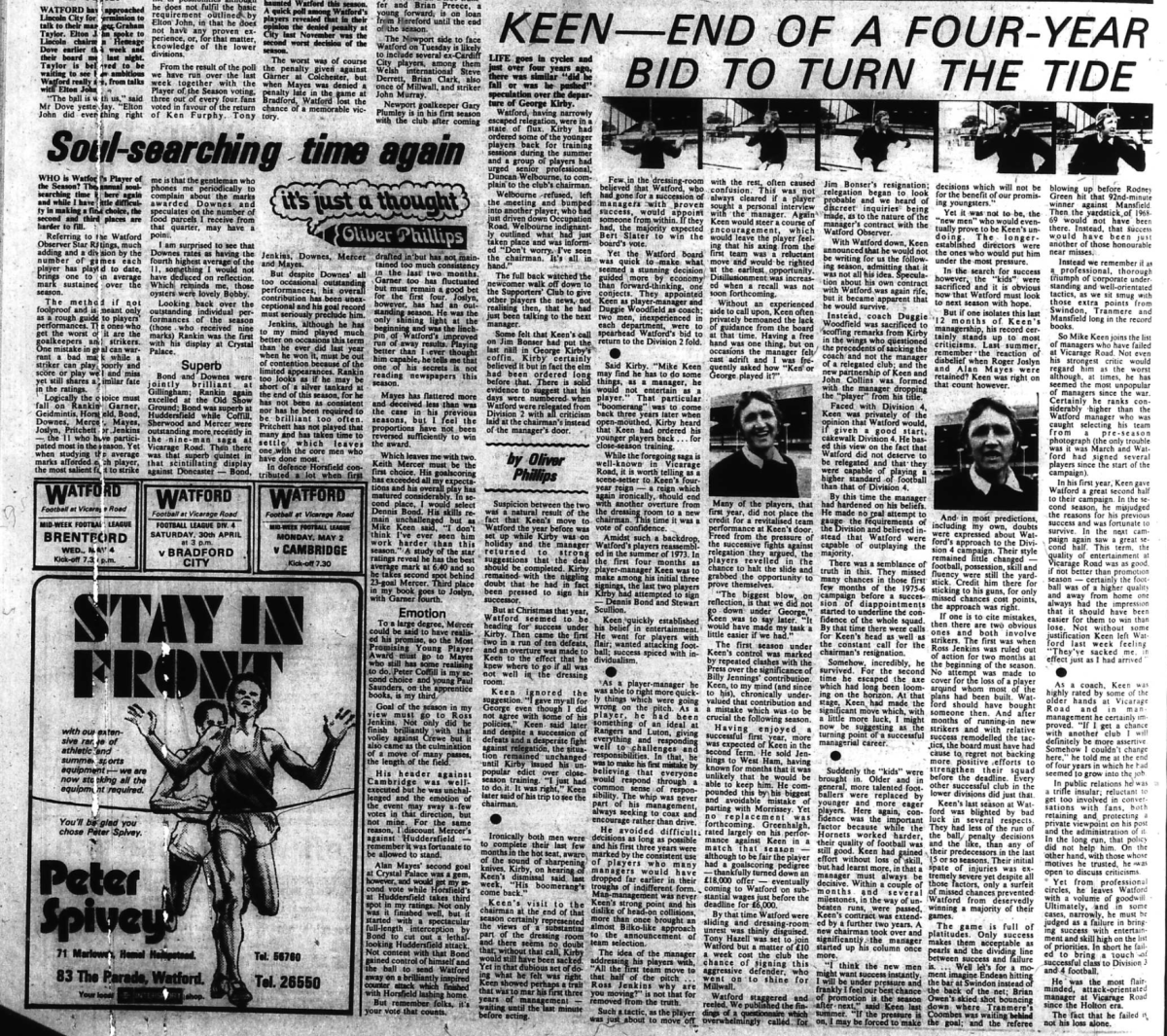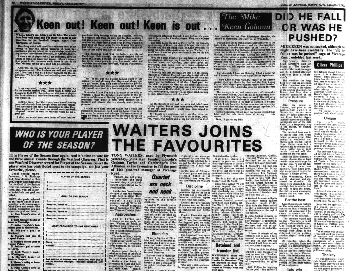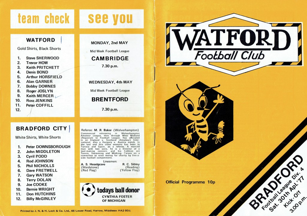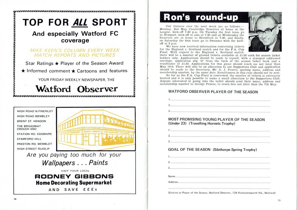 Whilst it is acknowledged in the programme that our promotion chances are over and plans are discussed for next season there is no mention that Mike Keen was relieved of his duties as Watford boss the previous day and he is still listed here as team manager.