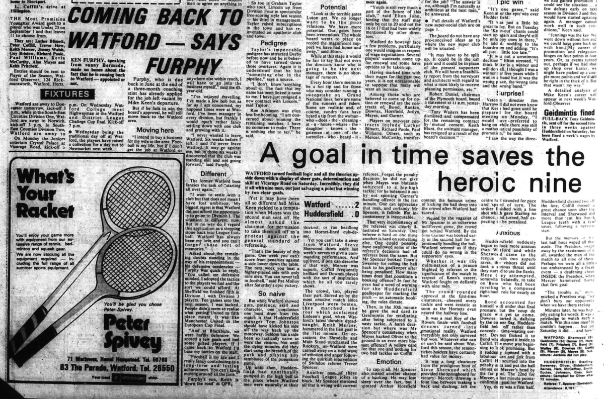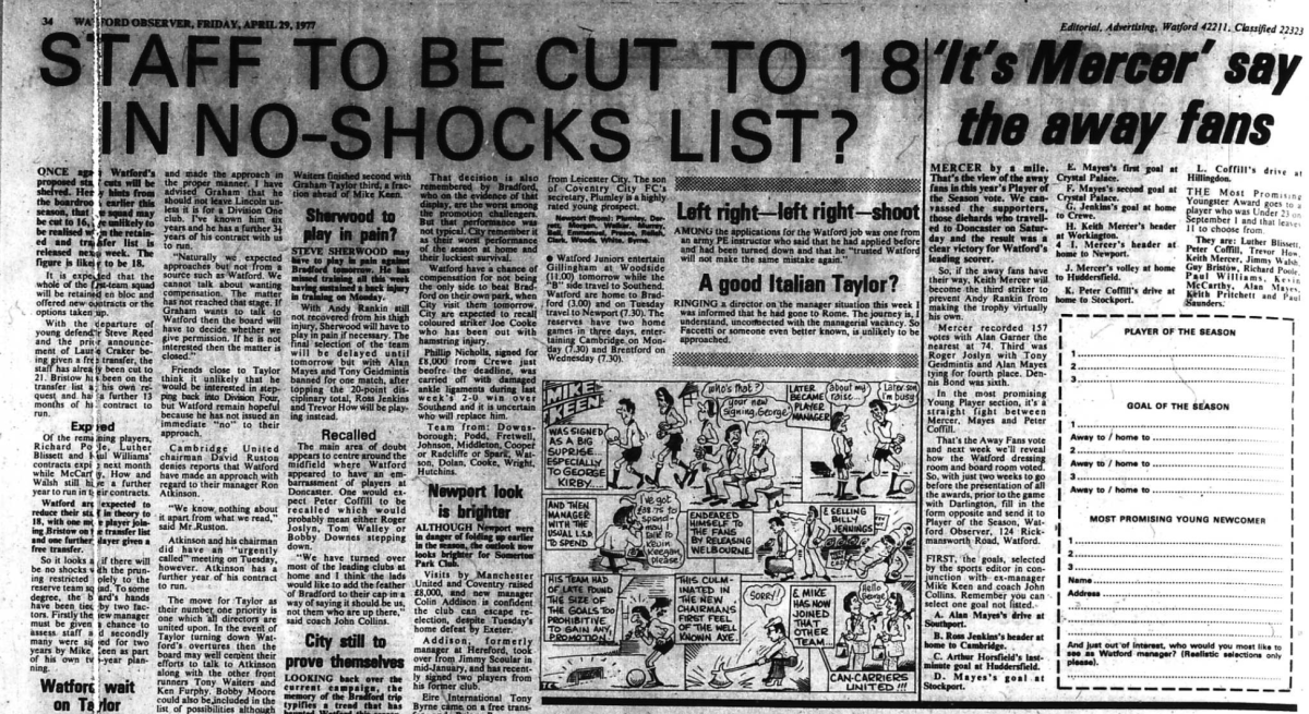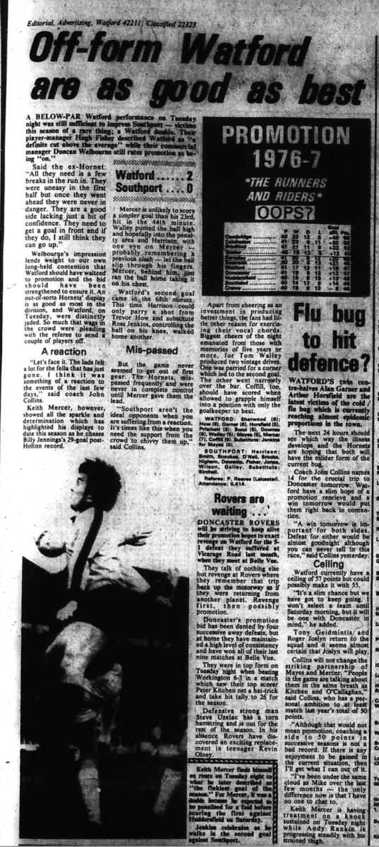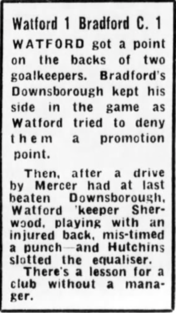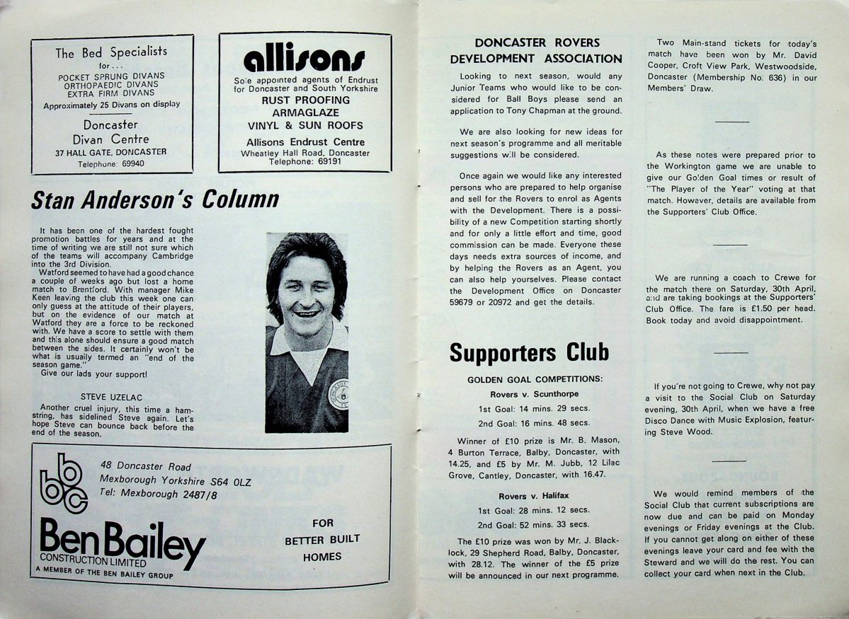 Whilst it is acknowledged in the programme that our promotion chances are over and plans are discussed for next season there is no mention that Mike Keen was relieved of his duties as Watford boss the previous day and he is still listed here as team manager.