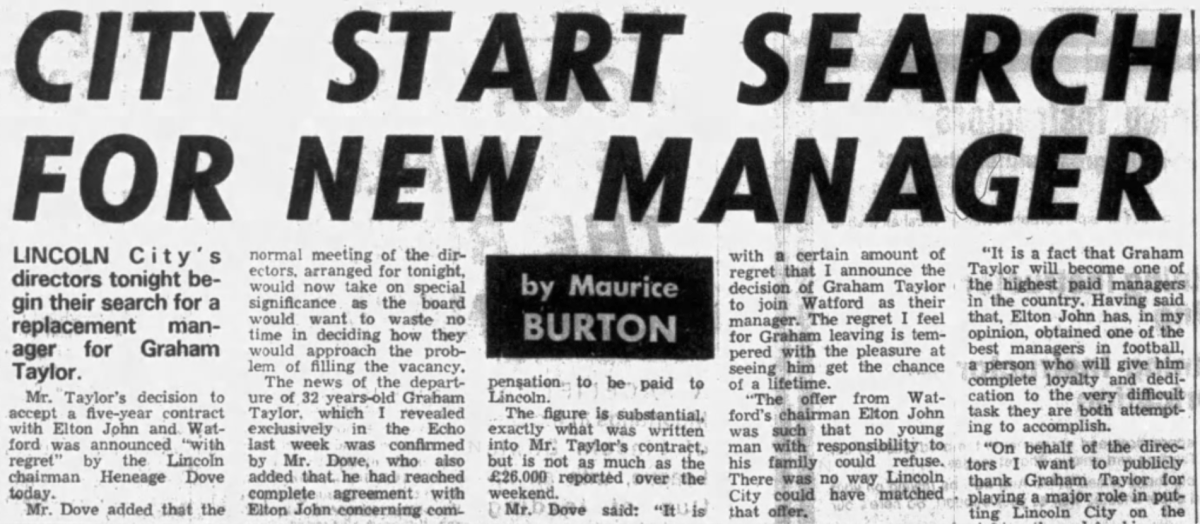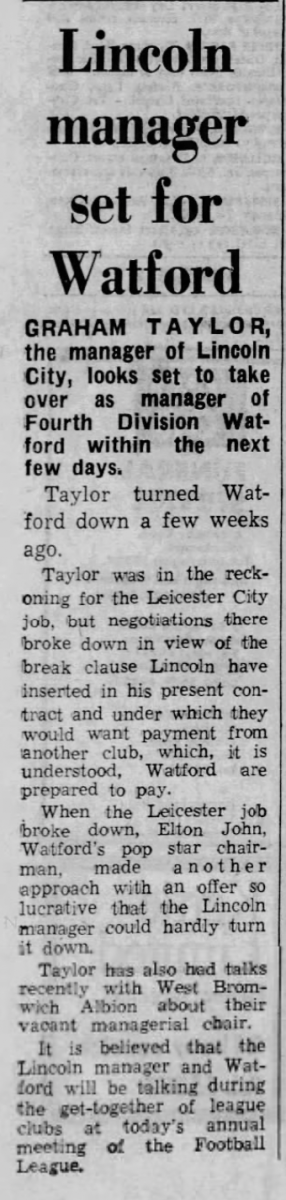 The Watford Observer are still referring to him as Mr.X but that morning the Lincolnshire Echo became the first paper to name Graham Taylor as the man Watford are interested in appointing as their new manager.