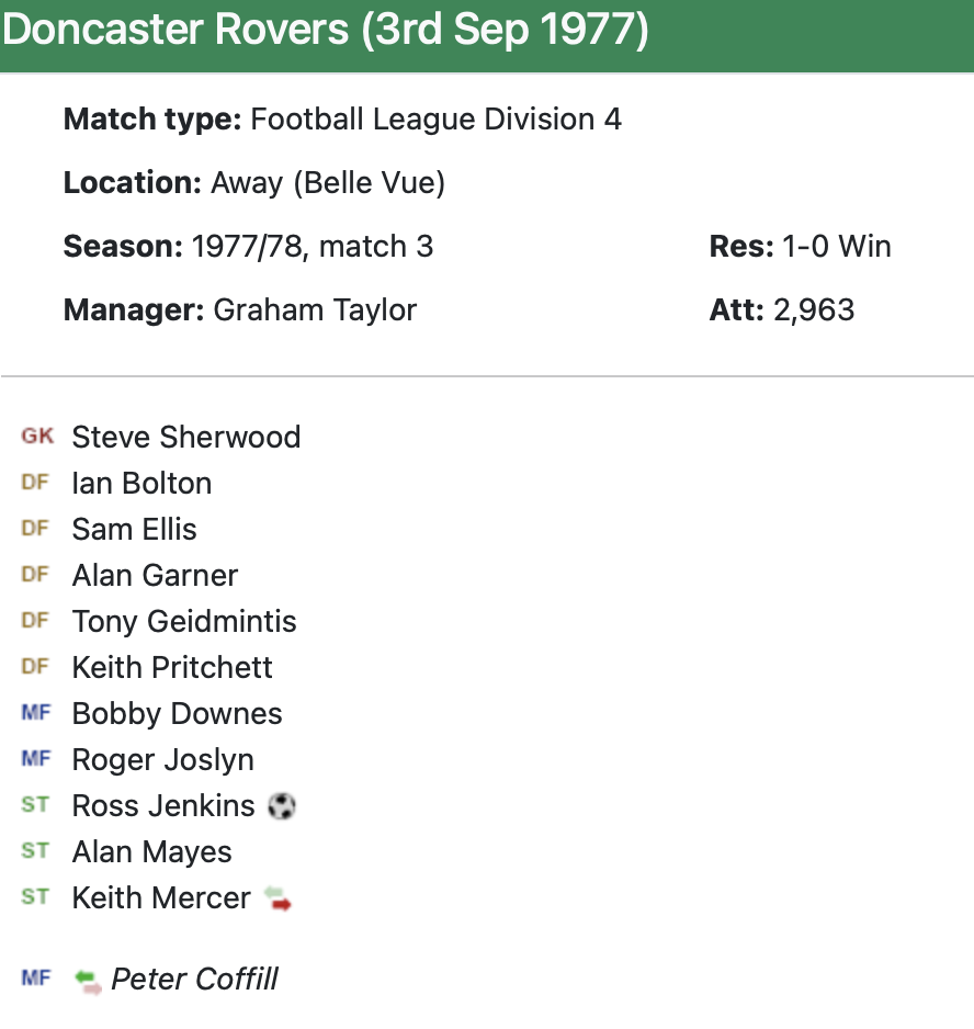 3rd September 1977- Division Four, Doncaster Rovers 0 Watford 1 https://watford.fcdb.info/index.php?page=matches Sunday People,3 Sep 1977 Watford Observer match report Sunday People Share this: Share on X (Opens in new window) X Share on Facebook (Opens in new window) Facebook