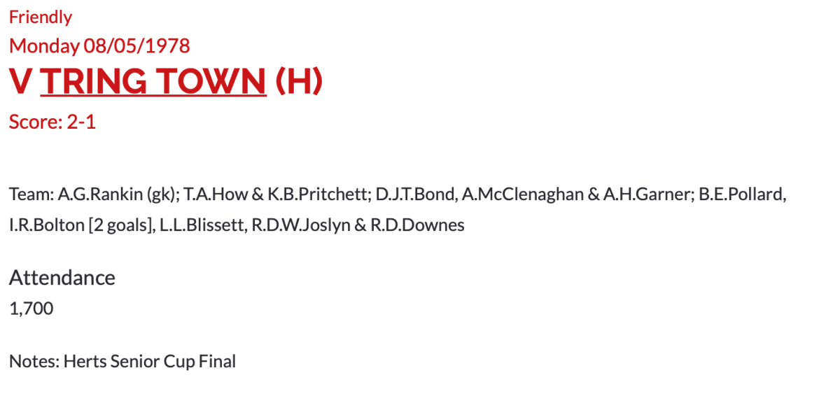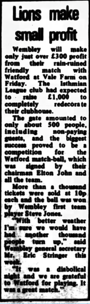 5th May 1978- Friendly, Wembley 0 Watford 2 https://www.watfordfcarchive.co.uk/fixture/1978-05-05 Wycombe Midweek, 10 May 1978 Harrow Observer, 12 May 1978 Share this: Share on X (Opens in new window) X Share on Facebook (Opens in new window) Facebook