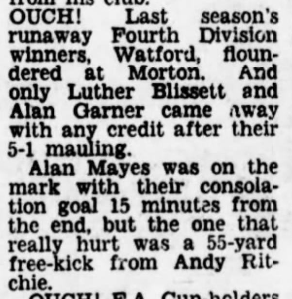 29th July 1978- Friendly, Morton 5 Watford 1 https://www.watfordfcarchive.co.uk/fixture/1978-07-29 Sunday People, 30 July 1978 Sunday Mirror, 30 July 1978 Share this: Share on X (Opens in new window) X Share on Facebook (Opens in new window) Facebook