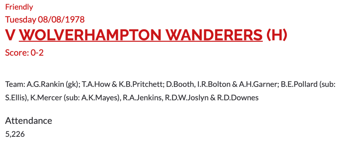 8th August 1978- Friendly, Watford 0 Wolverhampton Wanderers 2 Leave a Reply Black Country Evening Mail, 8 Aug 1978 https://www.watfordfcarchive.co.uk/fixture/1978-08-08 Watford Observer match report Birmingham Post, 9 Aug 1978 Black Country Evening Mail, 9 Aug 1978 Share this: Share on X (Opens in new window) X Share on Facebook (Opens in new window) Facebook