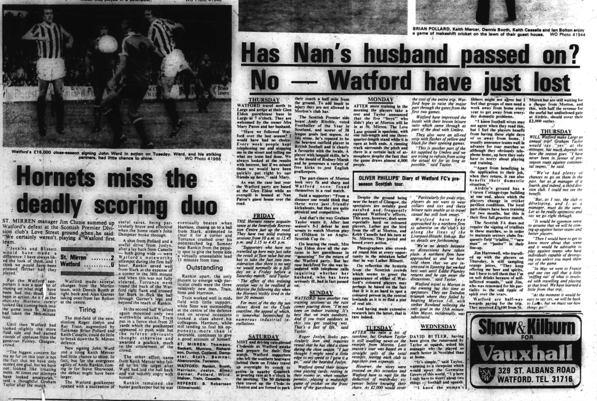 1st August 1979- Friendly, Airdrieonians 3 Watford 2 Leave a Reply Watford Observer match report Daily Record, 2 Aug 1979 https://www.watfordfcarchive.co.uk/fixture/1979-08-01 Share this: Share on X (Opens in new window) X Share on Facebook (Opens in new window) Facebook