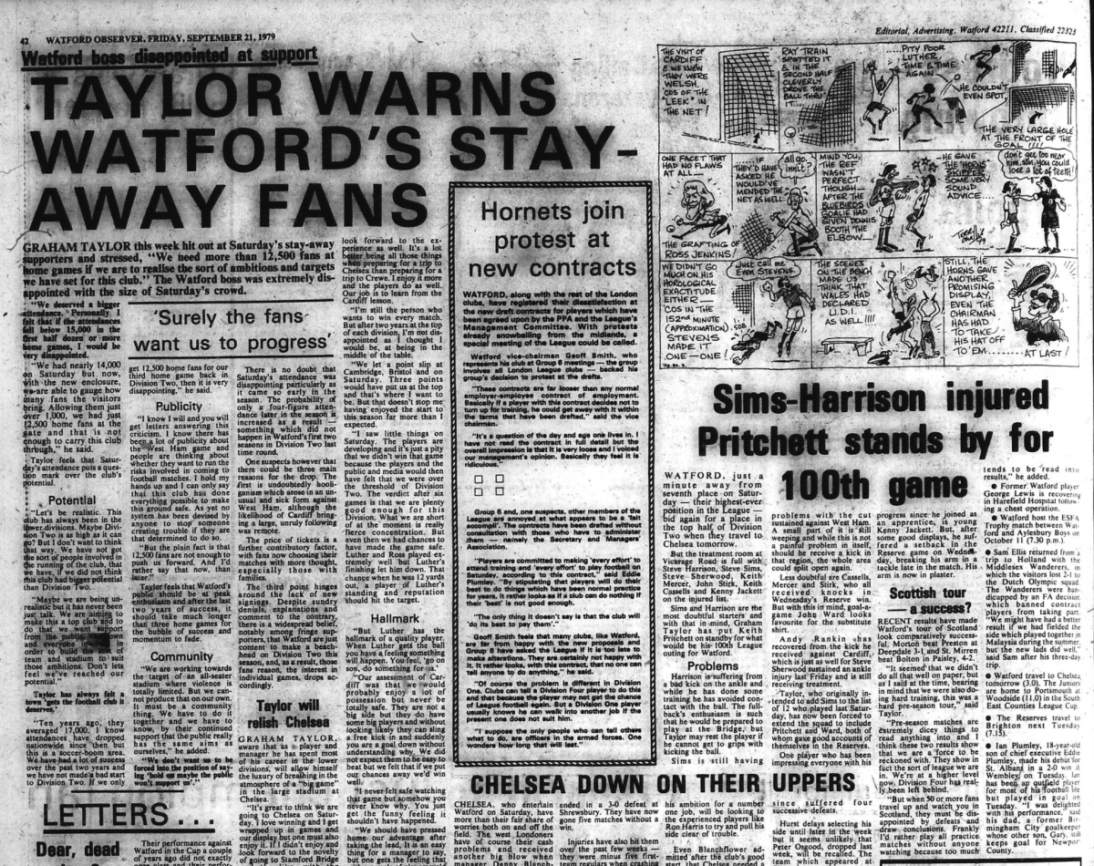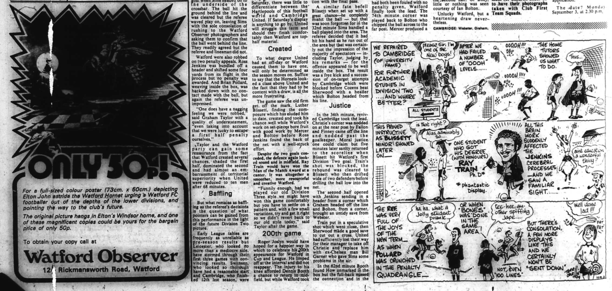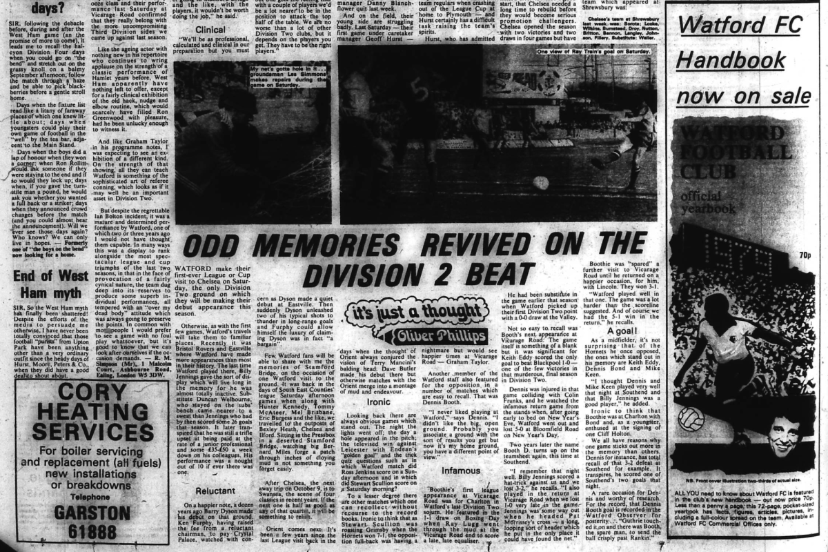 Old Watford is a day by day scrapbook style history of Watford Football Club matches told through programmes, newspapers, books, fanzines, videos and weblinks.