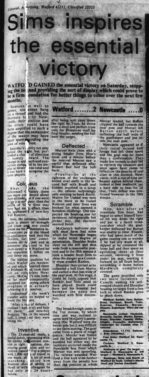 20th October 1979- Division Two, Watford 2 Newcastle United 0 Leave a Reply http://watford.fcdb.info?s=32564&id=3305 Watford Observer match report Sunday Mirror, 21 Oct 79 Sunday People, 21 Oct 79 Sunday Telegraph, 21 Oct 1979 Share this: Share on X (Opens in new window) X Share on Facebook (Opens in new window) Facebook