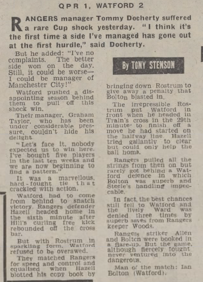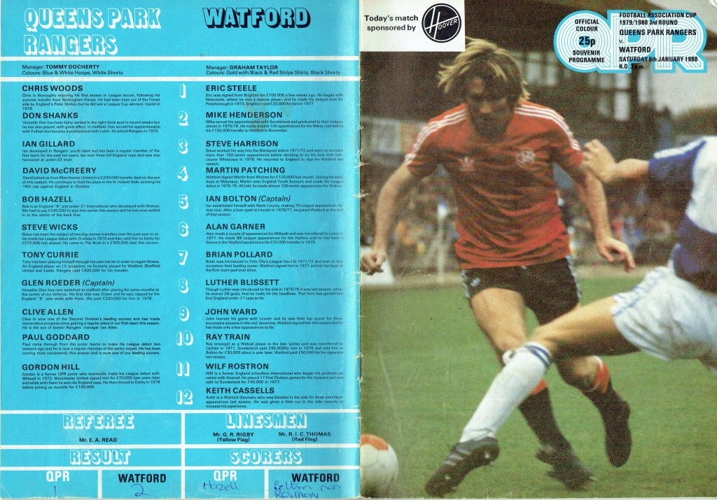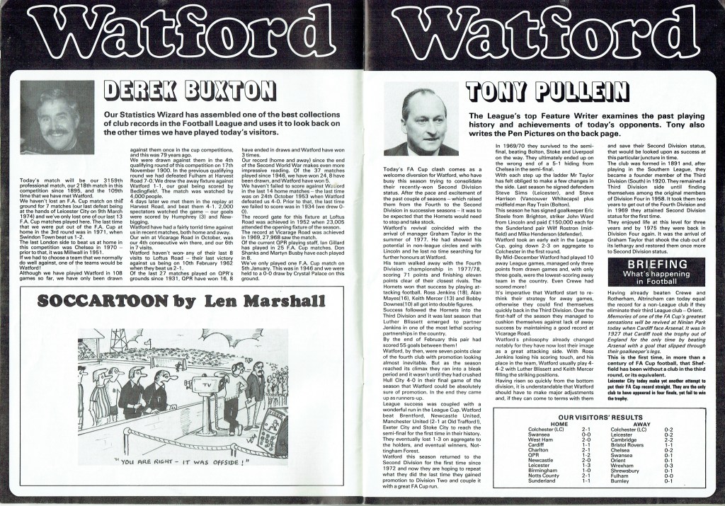 Taken from the programme on 9th February 1980-Division Two, Watford 2 Chelsea 3