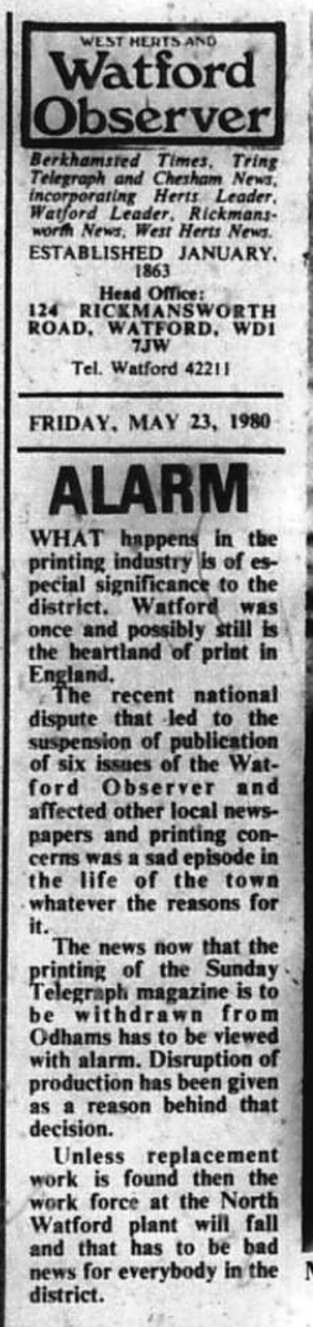 23rd May 1980- Watford Observer This was the first edition for six weeks. Share this: Share on X (Opens in new window) X Share on Facebook (Opens in new window) Facebook