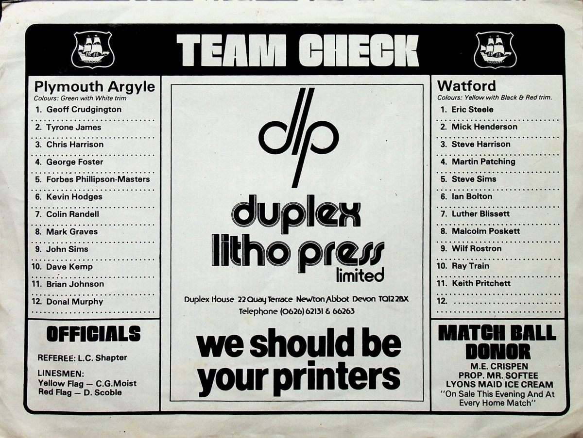 31st July 1980- Friendly, Plymouth Argyle 1 Watford 1 Programme images courtesy of Matt Hall https://www.watfordfcarchive.co.uk/fixture/1980-07-31 Watford Observer match report Share this: Share on X (Opens in new window) X Share on Facebook (Opens in new window) Facebook