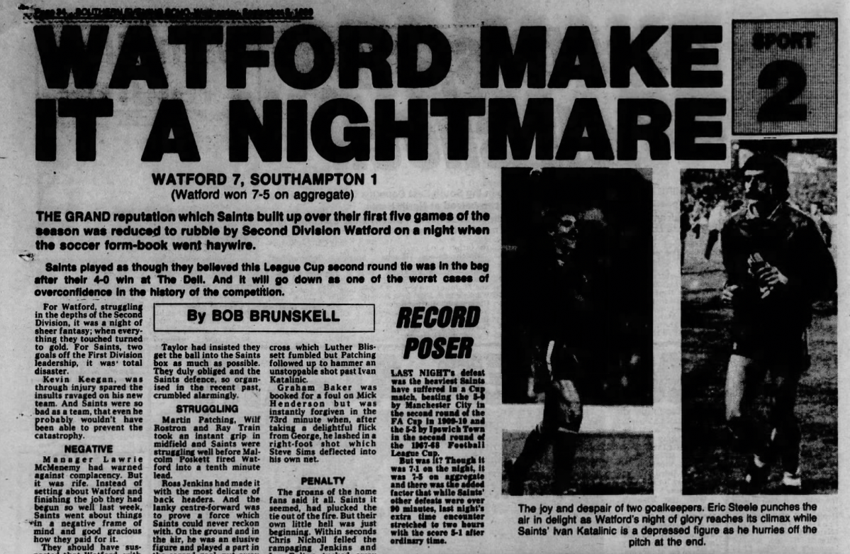2nd September 1980-League Cup Second Round Second Leg, Watford 7 (Seven) Southampton 1 (After Extra Time, Watford won 7-5 on aggregate)