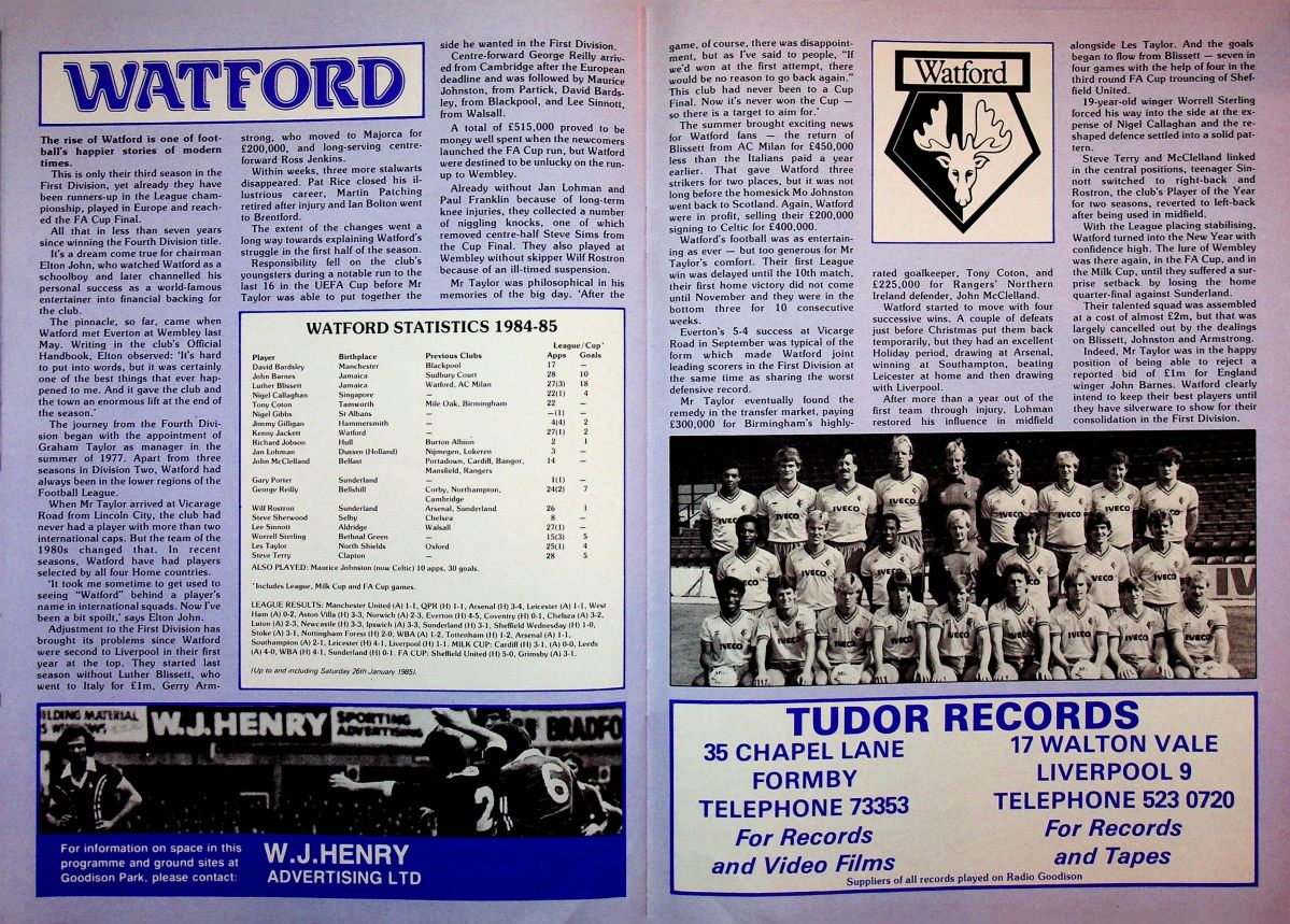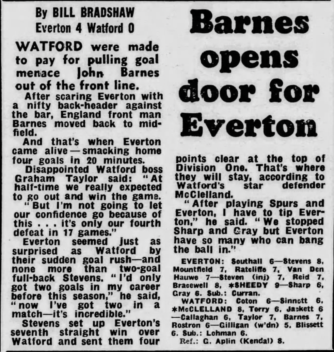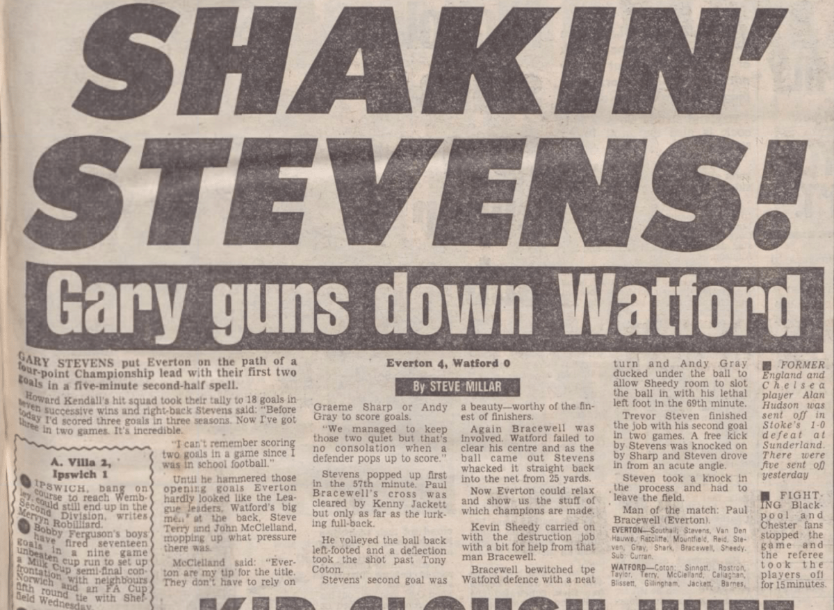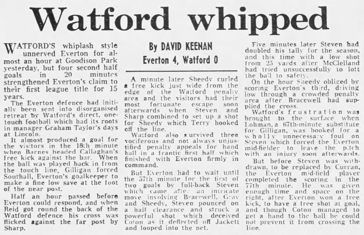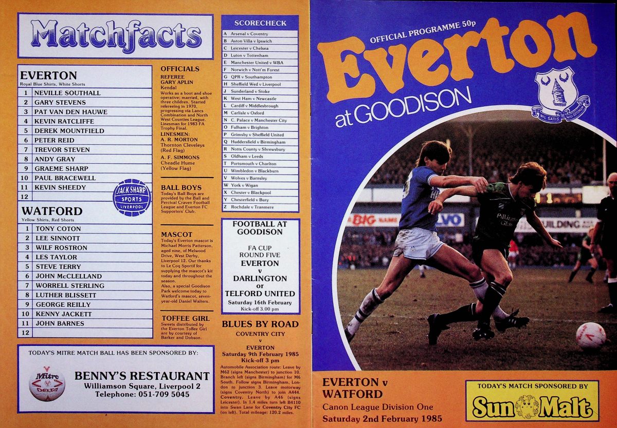 2nd February 1985- Division One, Everton 4 Watford 0 Programme images courtesy of Matt Hall https://watford.fcdb.info/index.php?page=matches Sunday Telegraph, 3 Feb 1985 Sunday Mirror, 3 Feb 1985 Sunday People, 3 Feb 1985 Share this: Share on X (Opens in new window) X Share on Facebook (Opens in new window) Facebook