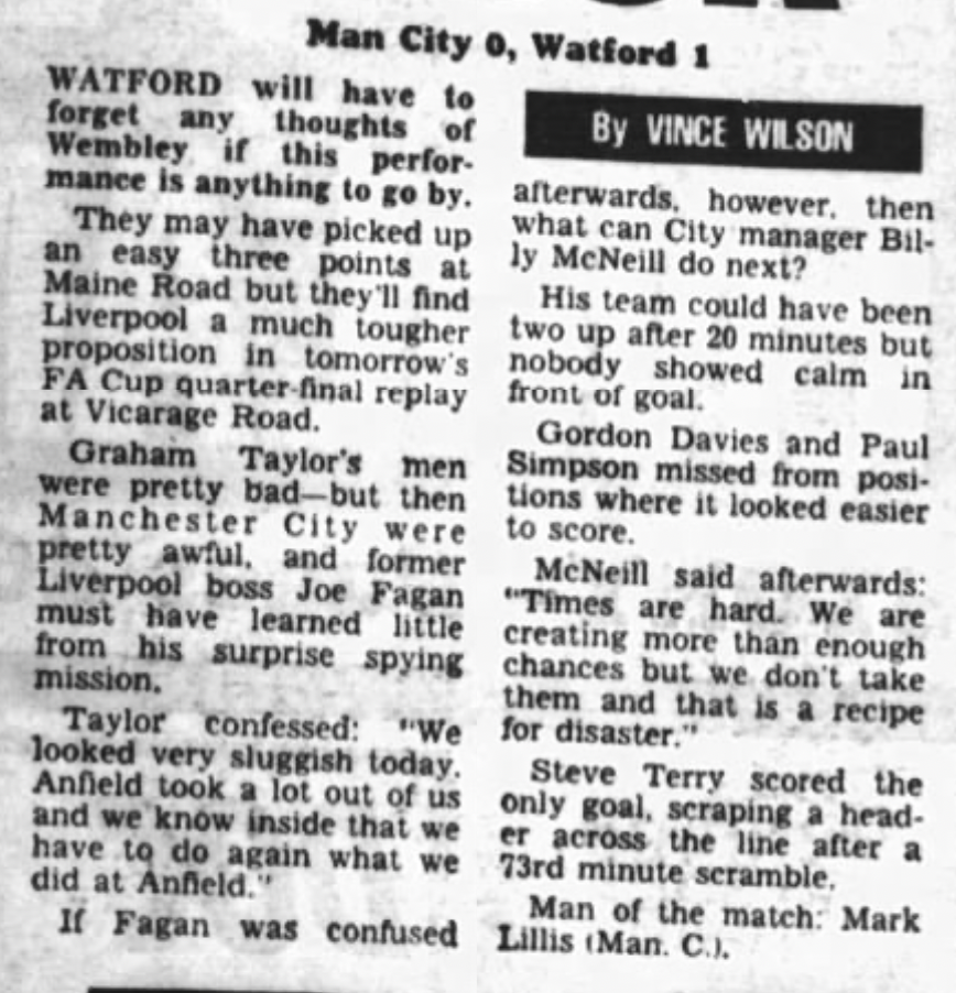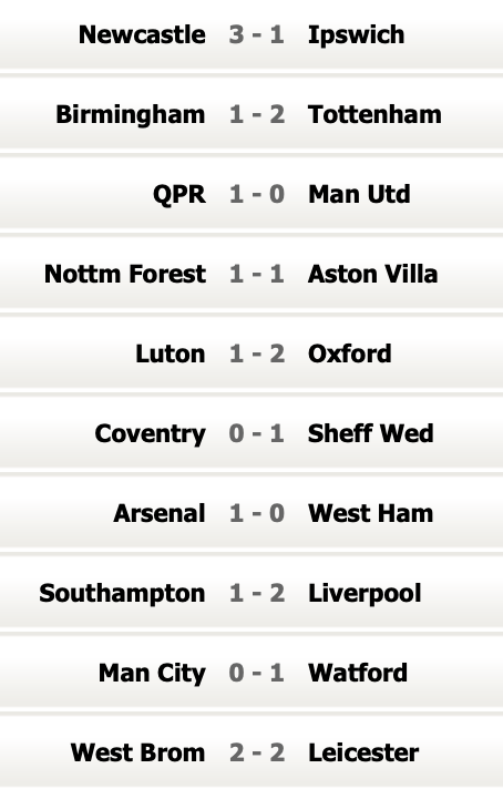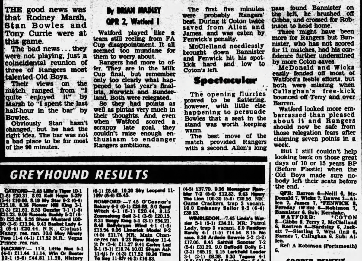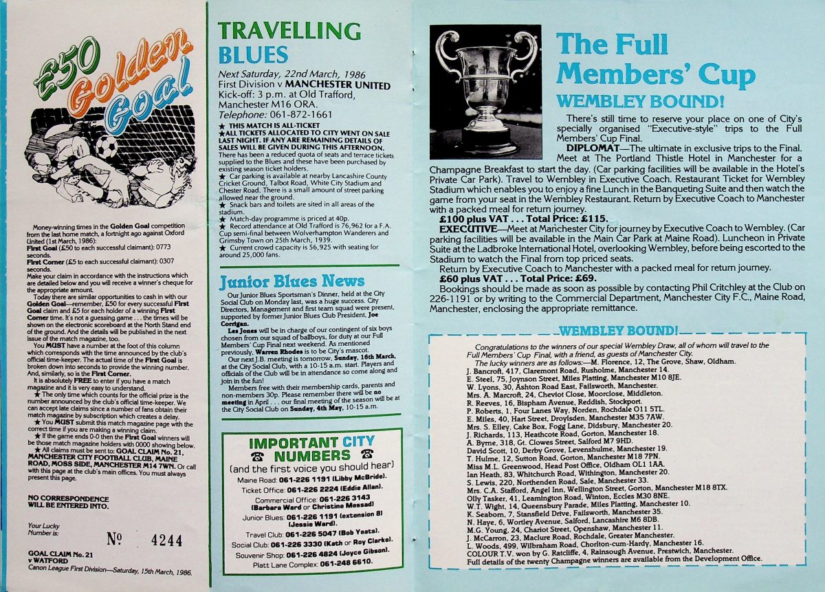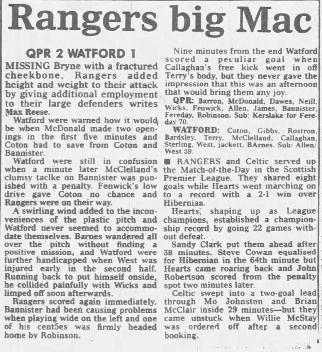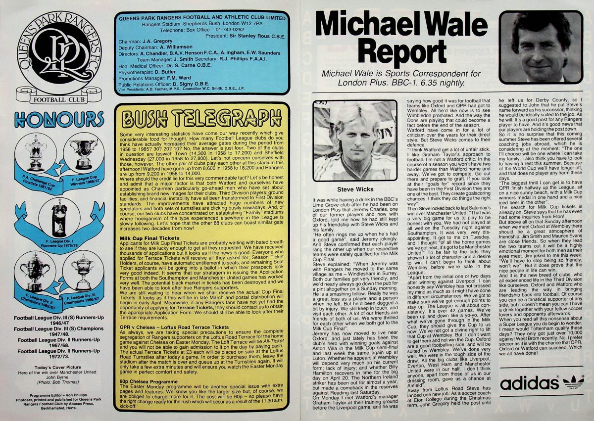 The first game of the double-header against Arsenal. This game was always scheduled to be played on Easter Monday but the fixture at Vicarage Road which should have been on Boxing Day 1985 was postponed twice and eventually rearranged for 1st April meaning the sides would face each other on consecutive days.