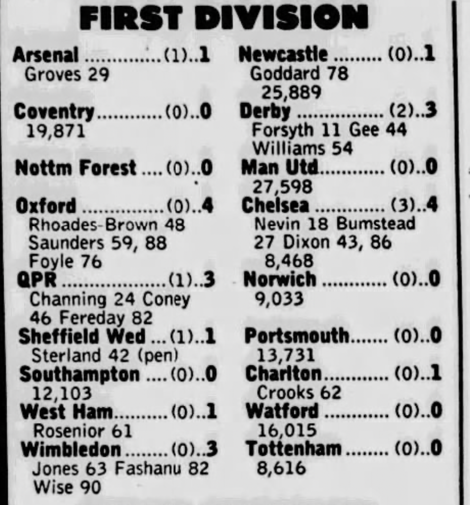 29th March 1988- Division One, Chelsea 1 Watford 1 Leave a Reply http://watford.fcdb.info?id=3760 https://www.soccerbase.com/matches/results.sd?date=1988-03-29 https://www.11v11.com/league-tables/league-division-one/29-march-1988/ Share this: Share on X (Opens in new window) X Share on Facebook (Opens in new window) Facebook