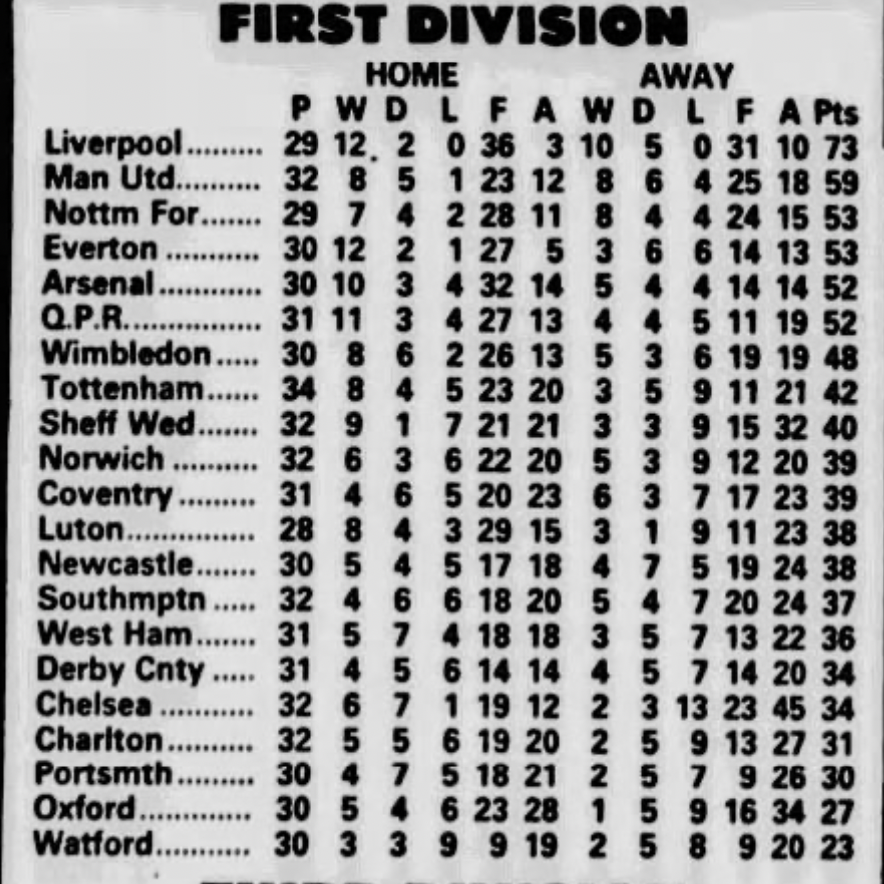 5th March 1988- Division One, Watford 0 Southampton 1 Leave a Reply https://www.soccerbase.com/matches/results.sd?date=1988-03-05 https://www.11v11.com/league-tables/league-division-one/05-march-1988/ Share this: Share on X (Opens in new window) X Share on Facebook (Opens in new window) Facebook