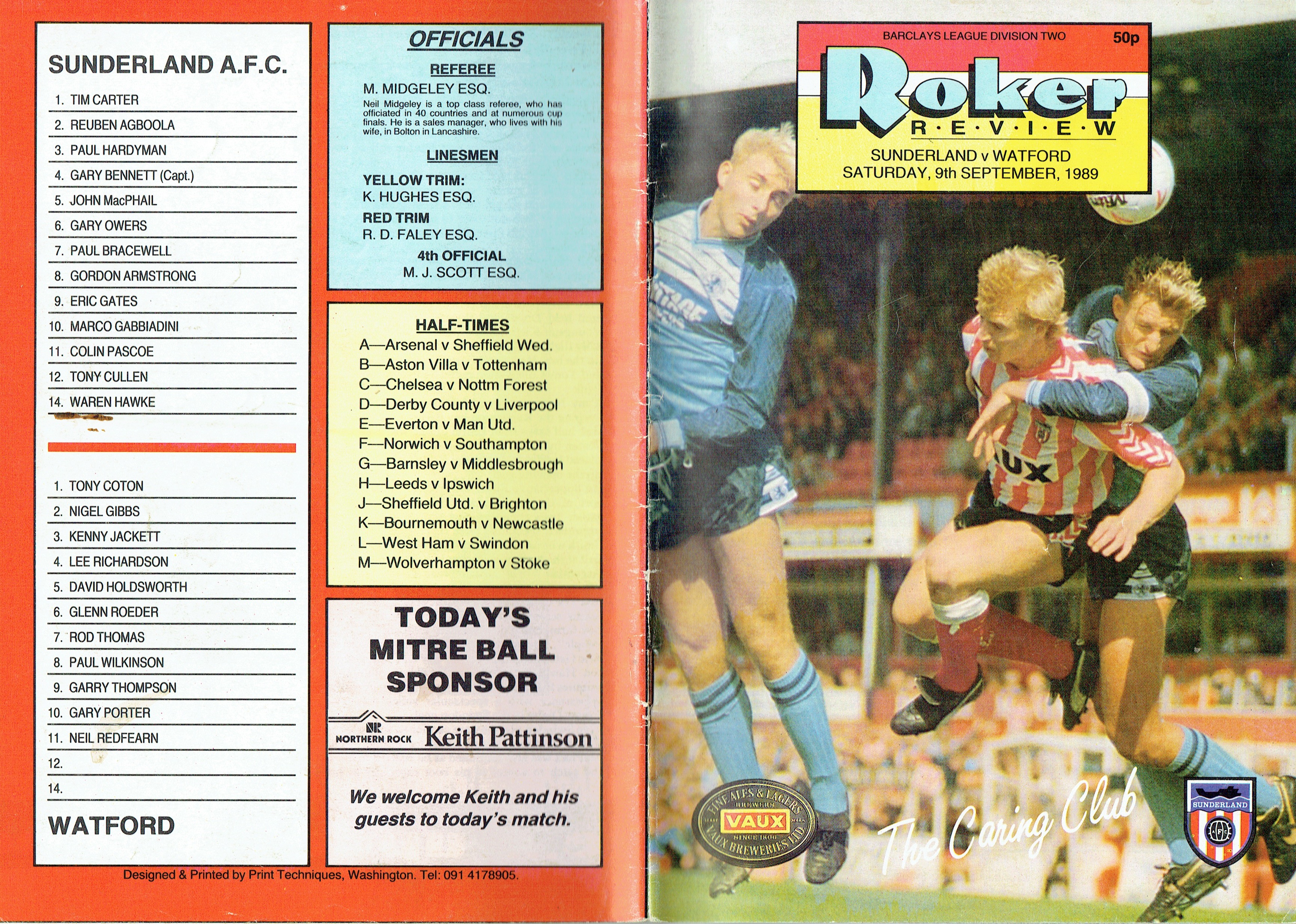 9th September 1989- Division Two, Sunderland 4 Watford 0 Leave a Reply A familiar tune plays as the teams warm up before the game. http://watford.fcdb.info?id=3833 16th September 1989- Division Two, Watford 1 Port Vale 0 Share this: Share on X (Opens in new window) X Share on Facebook (Opens in new window) Facebook