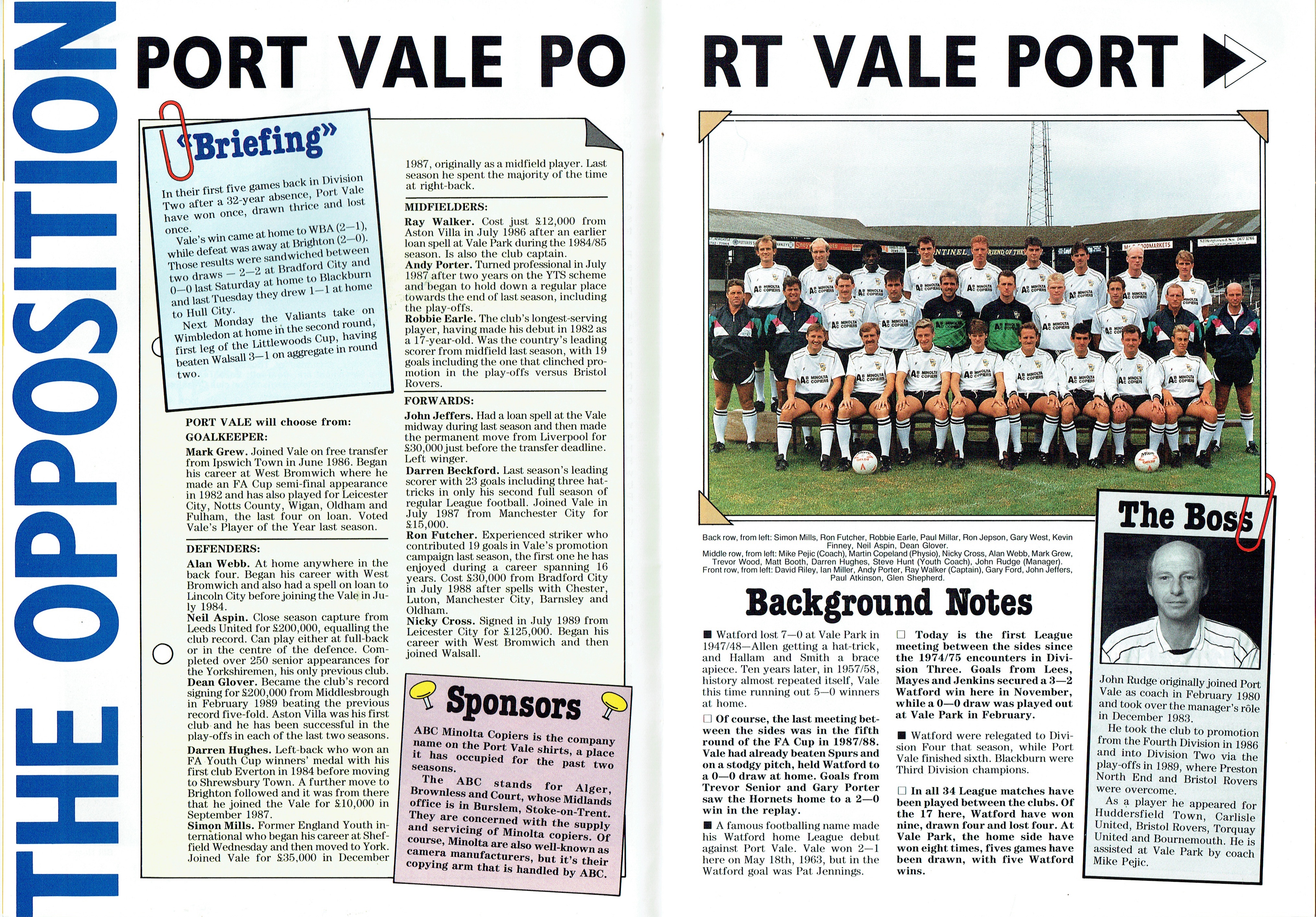 16th September 1989- Division Two, Watford 1 Port Vale 0 Leave a Reply http://watford.fcdb.info?id=3834 Share this: Share on X (Opens in new window) X Share on Facebook (Opens in new window) Facebook