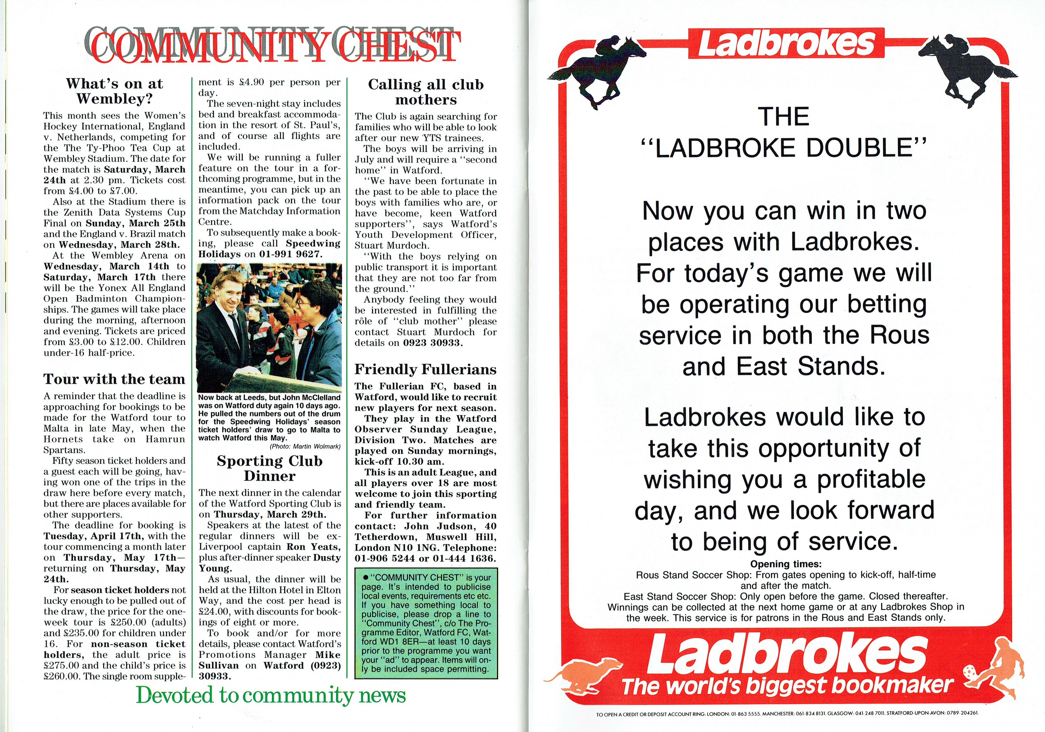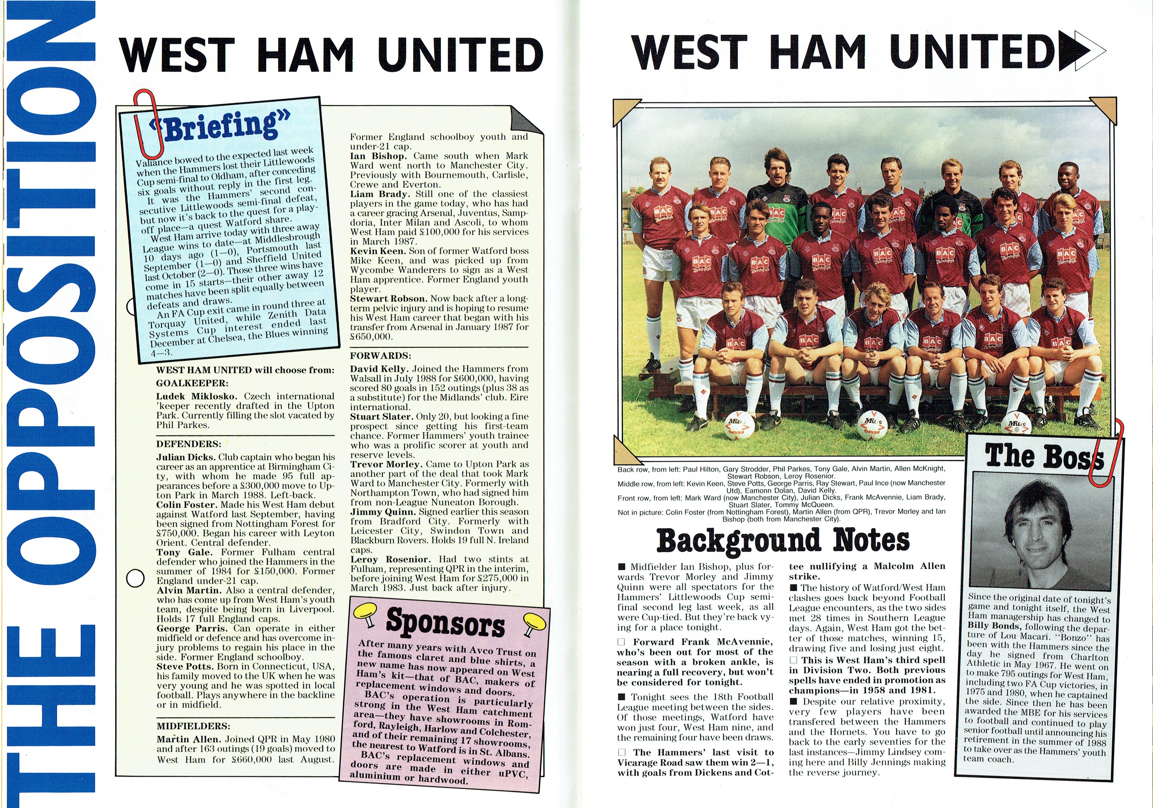 13th March 1990- Division Two, Watford 0 West Ham United 1 Leave a Reply Steve Harrison’s final programme notes. Share this: Share on X (Opens in new window) X Share on Facebook (Opens in new window) Facebook