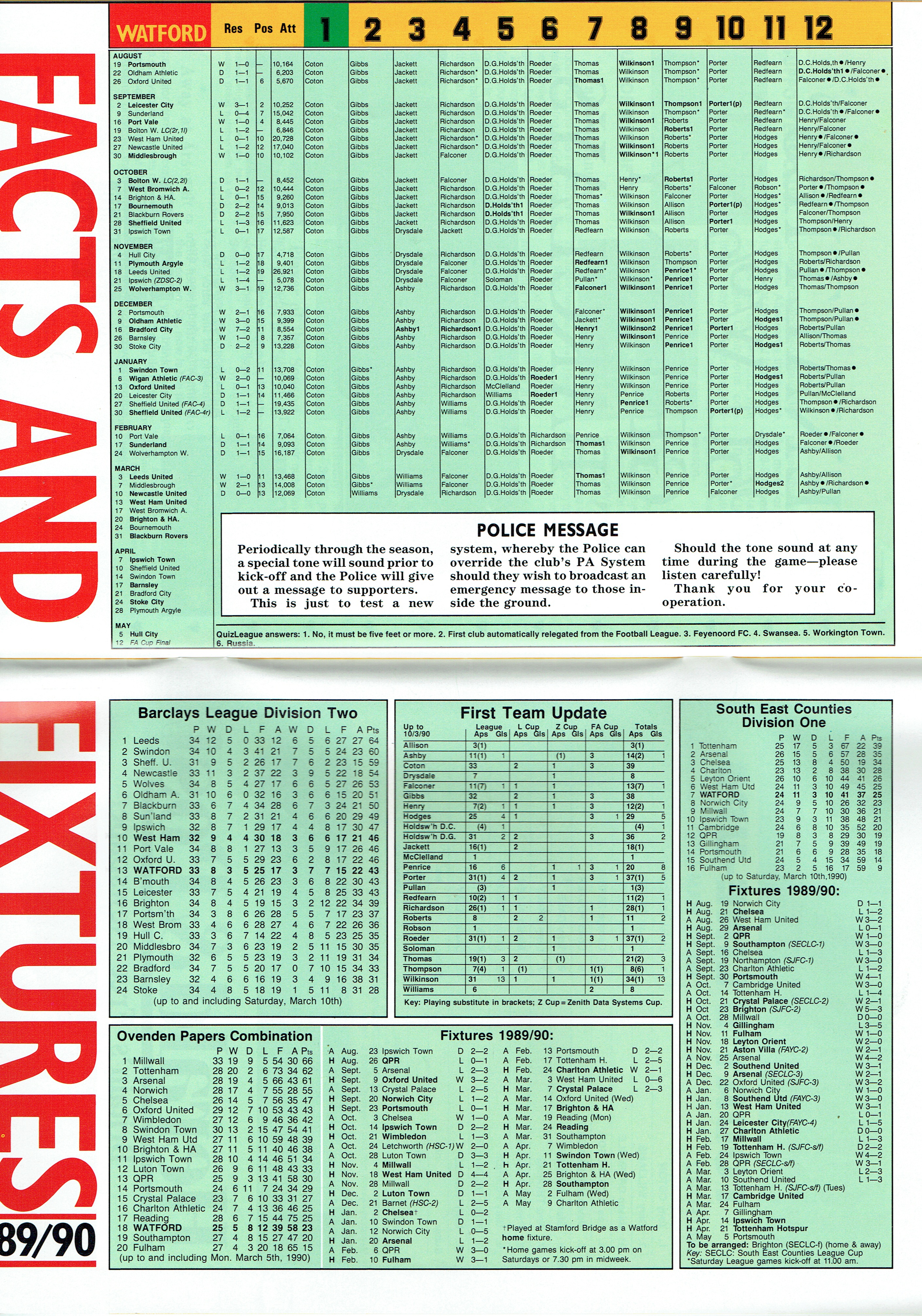 31st March 1990- Division Two, Watford 3 Blackburn Rovers 1 Leave a Reply Colin Lee’s first programme notes. http://watford.fcdb.info?id=3872 Share this: Share on X (Opens in new window) X Share on Facebook (Opens in new window) Facebook