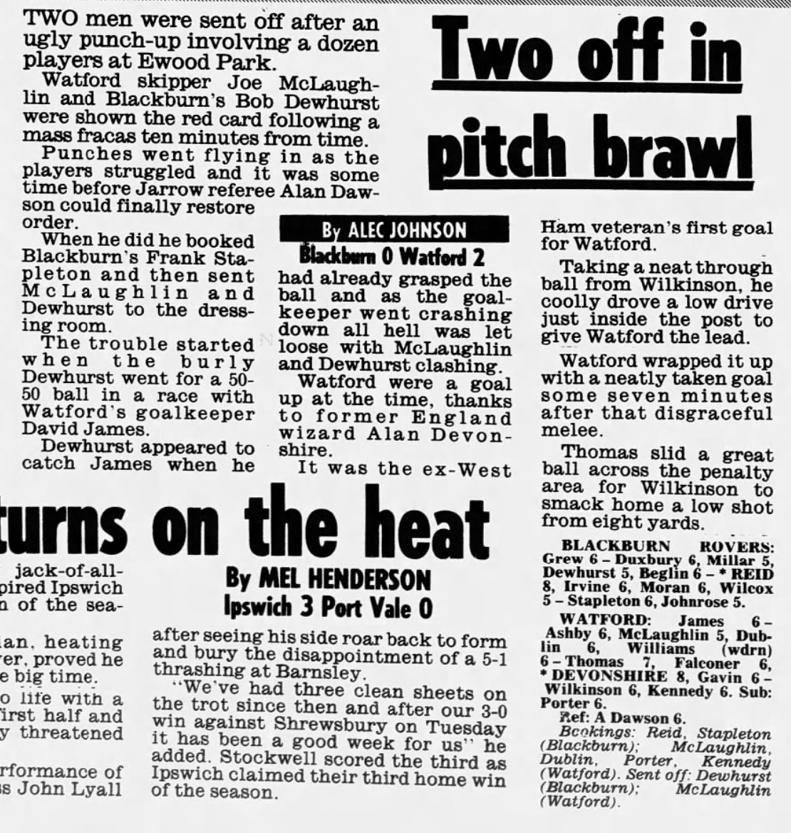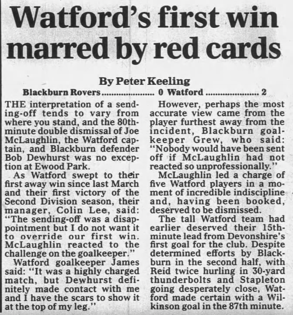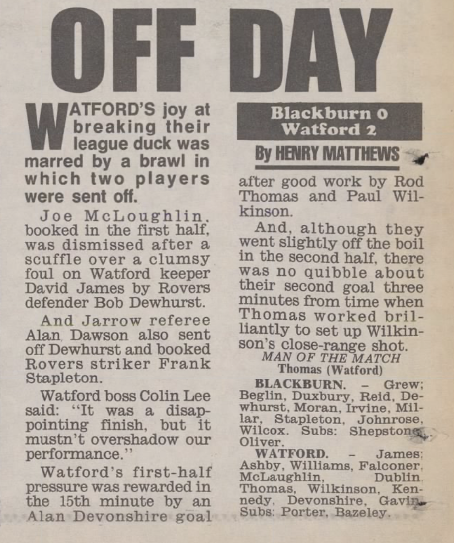 13th October 1990- Division Two, Blackburn Rovers 0 Watford 2 https://watford.fcdb.info/index.php?page=matches Sunday People, 14 Oct 1990 Sunday Mirror, 14 Oct 1990 Sunday Telegraph, 14 Oct 1990 Daily Telegraph, 15 Oct 1990 Sunday People Share this: Share on X (Opens in new window) X Share on Facebook (Opens in new window) Facebook