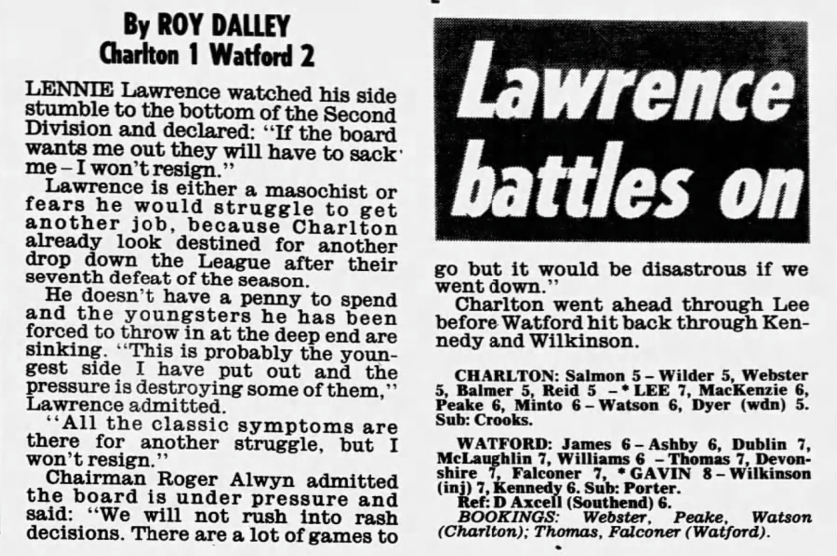 20th October 1990- Division Two, Charlton Athletic 1 Watford 2 Programme images courtesy of Matt Hall https://watford.fcdb.info/index.php?page=matches Sunday Mirror, 21 Oct 1990 Sunday People, 21 Oct 1990 Share this: Share on X (Opens in new window) X Share on Facebook (Opens in new window) Facebook