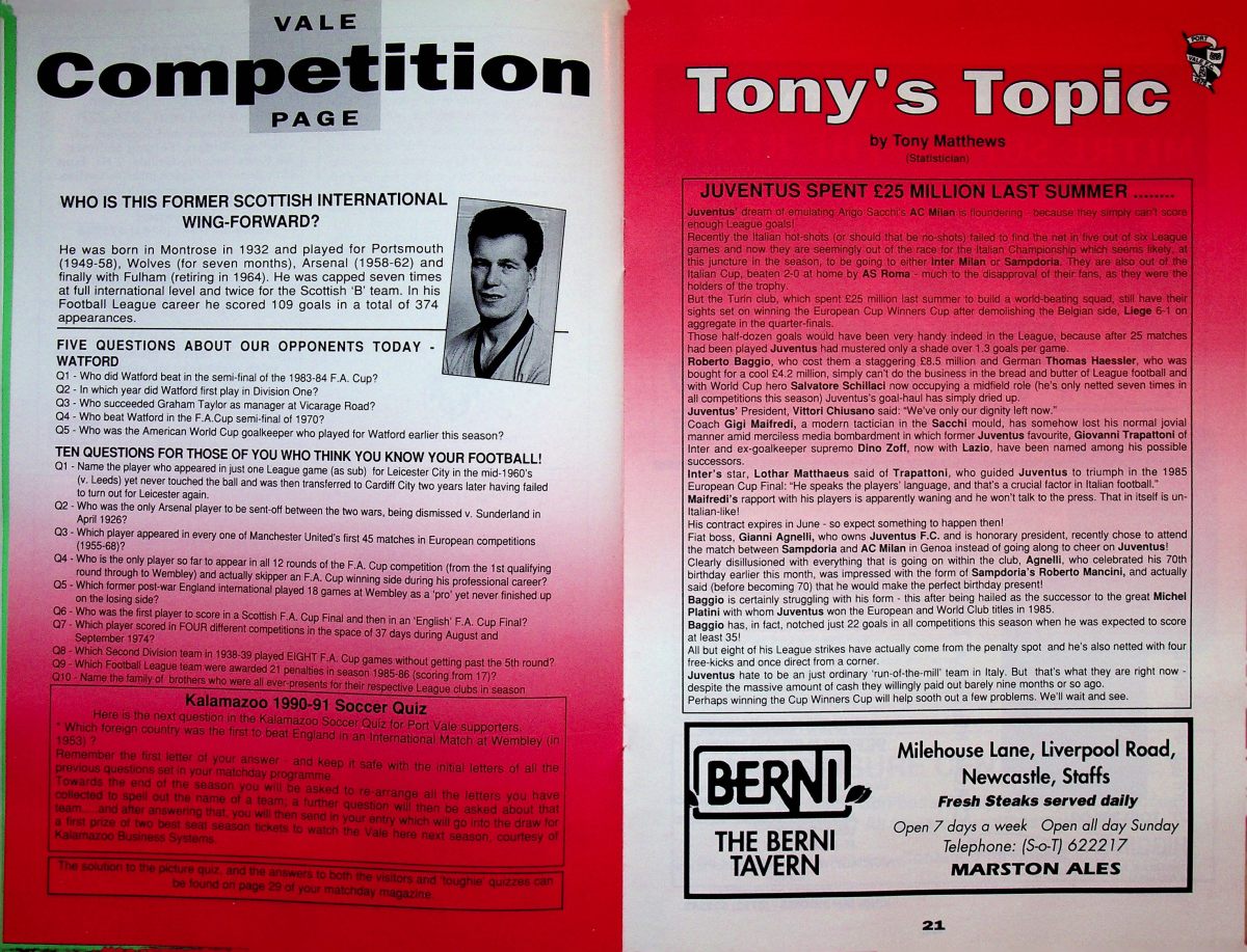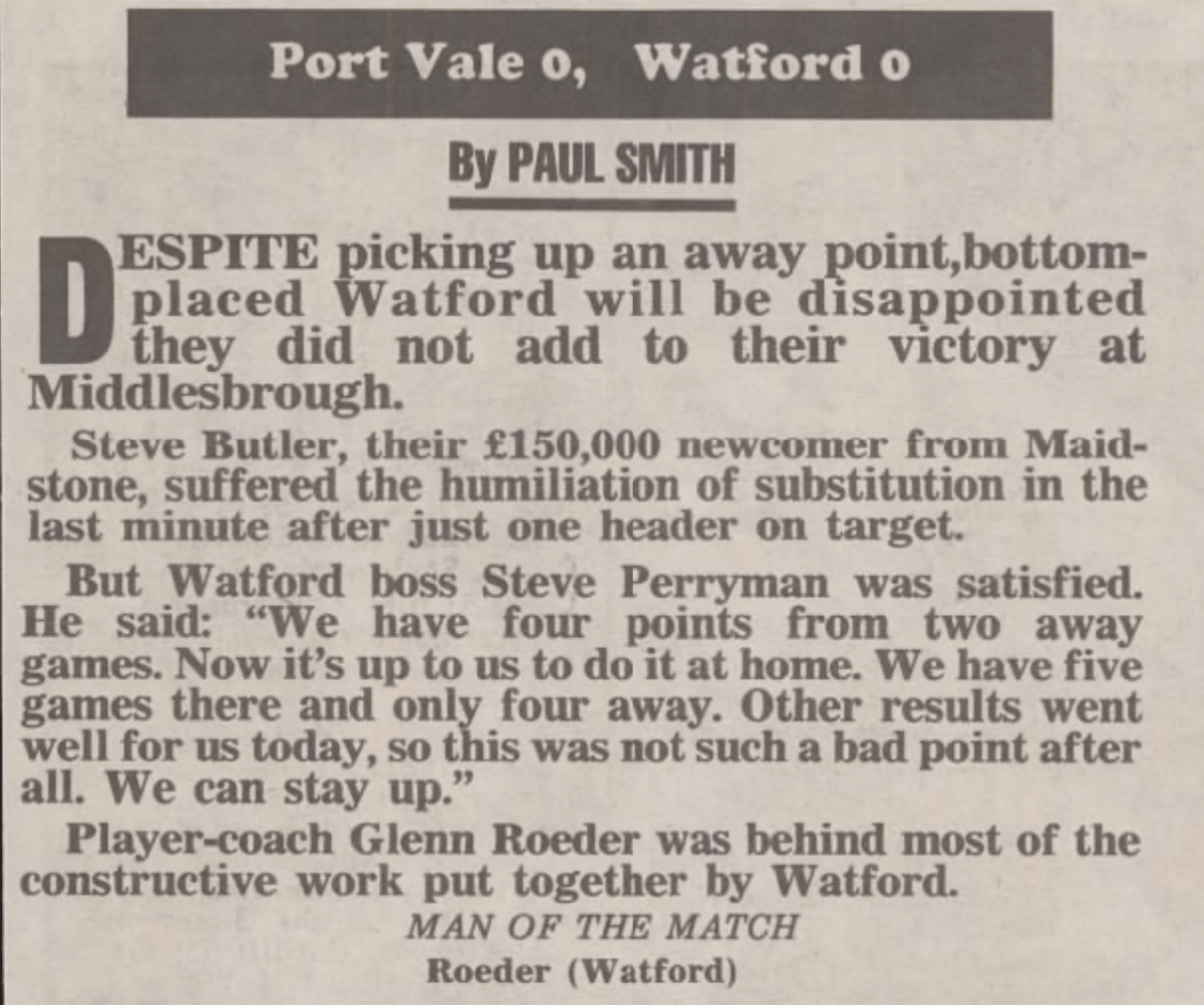 Steve Palmer, representing Ipswich Town in this match, scored the Hornets goal. He would join us four years later and would go on to score a further 8 times for Watford.