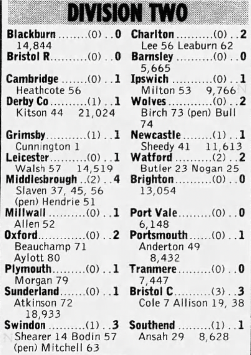 14th March 1992- Division Two, Watford 1 Sunderland 0 Leave a Reply The Watford result shown above is incorrect! We did win 1-0. Share this: Share on X (Opens in new window) X Share on Facebook (Opens in new window) Facebook
