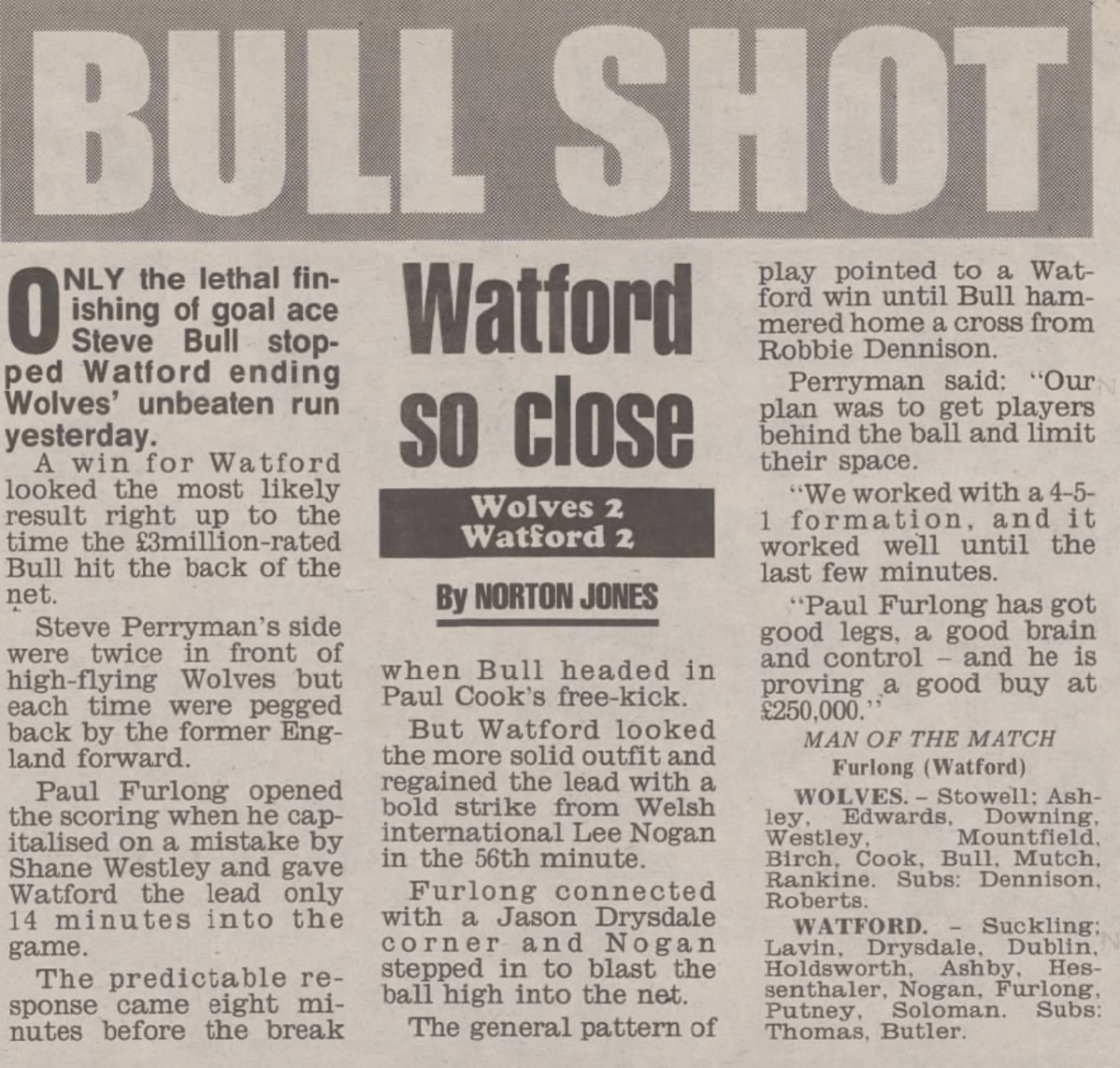 19th September 1992- New Division One, Wolverhampton Wanderers 2 Watford 2 Sports Argus, 19 Sep 1992 Sunday Mirror, 20 Sep 1992 Sunday People, 20 Sep 1992 Sunday People Share this: Share on X (Opens in new window) X Share on Facebook (Opens in new window) Facebook