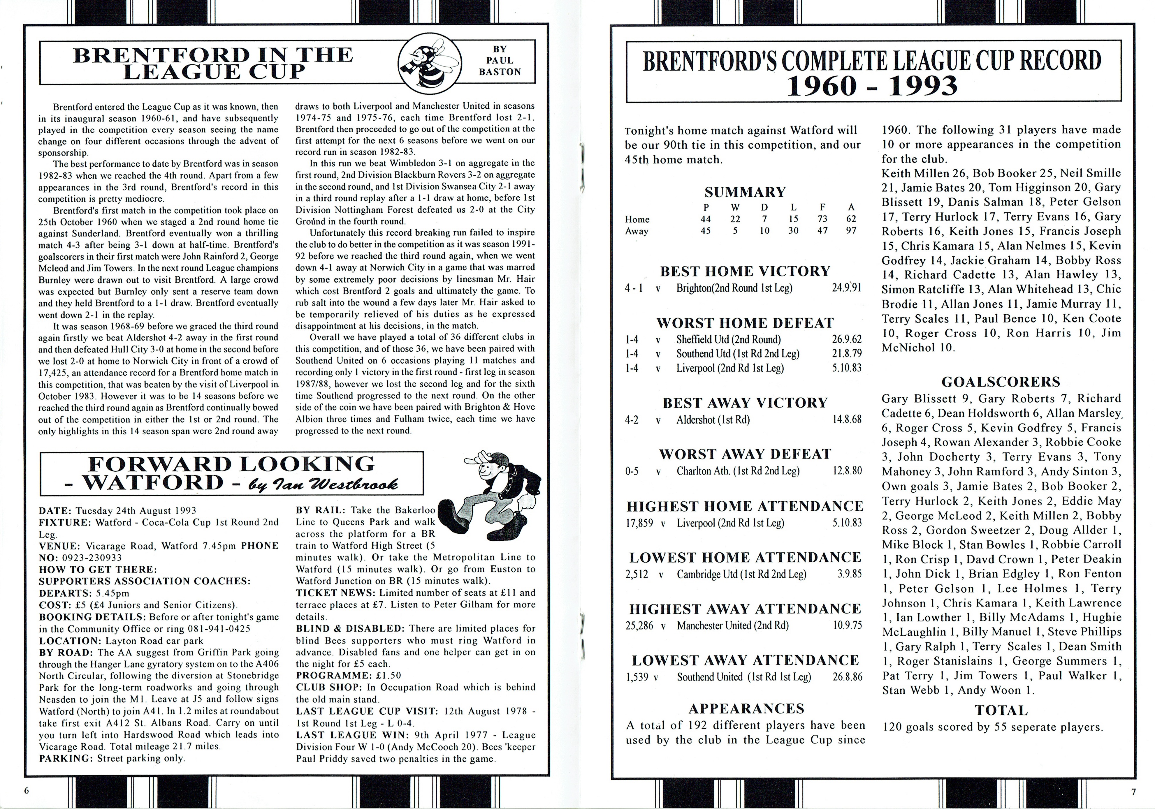 24th August 1993-League Cup First Round Second Leg, Watford 3 Brentford 1 (Watford won 5-3 on aggregate) Leave a Reply http://watford.fcdb.info?id=4039 Taken from 7 Sep 1993 Watford v Wolverhampton Wanderers programme Share this: Share on X (Opens in new window) X Share on Facebook (Opens in new window) Facebook