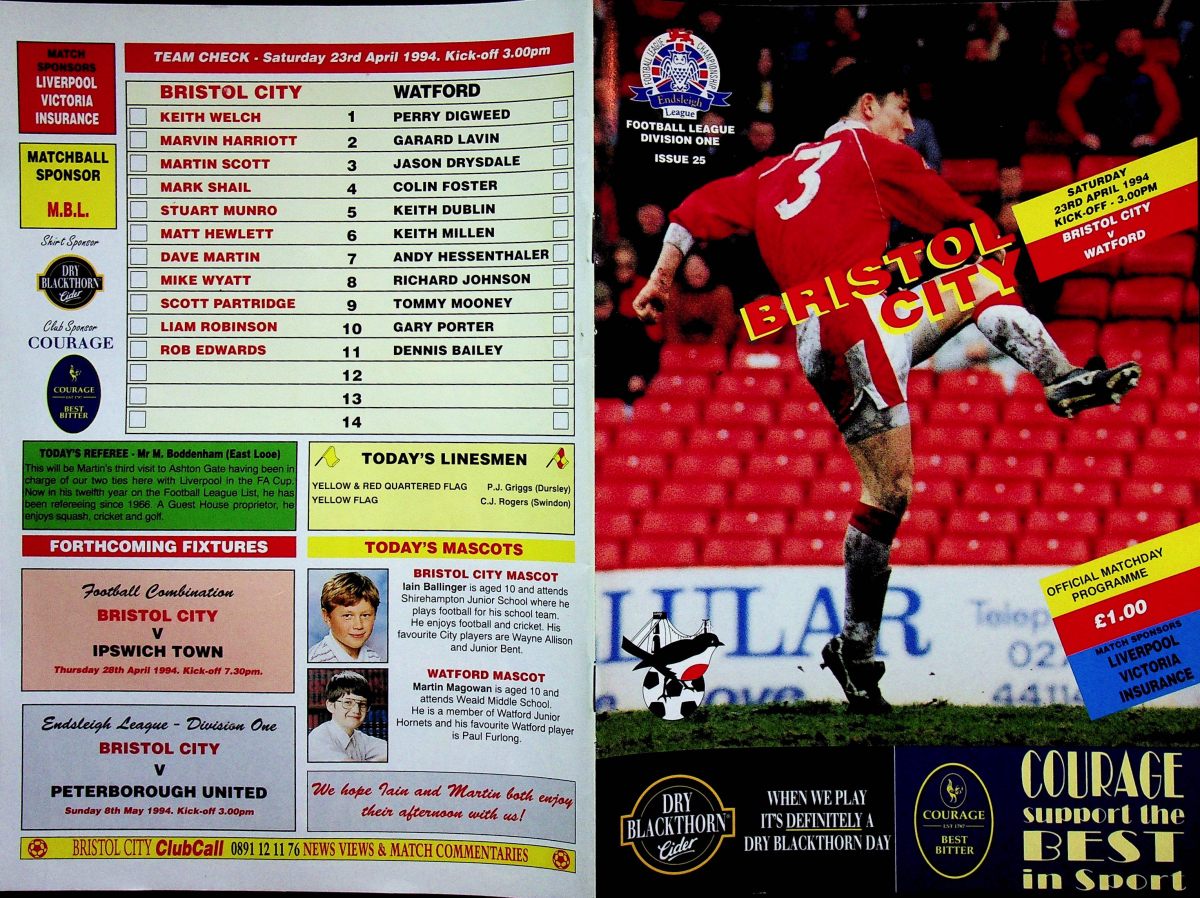 23rd April 1994- New Division One, Bristol City 1 Watford 1 Programme images courtesy of Matt Hall https://watford.fcdb.info/index.php?page=matches Sunday Mirror, 23 Apr 1994 Sunday People, 24 Apr 1994 Share this: Share on X (Opens in new window) X Share on Facebook (Opens in new window) Facebook