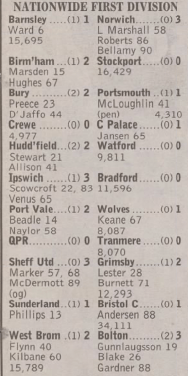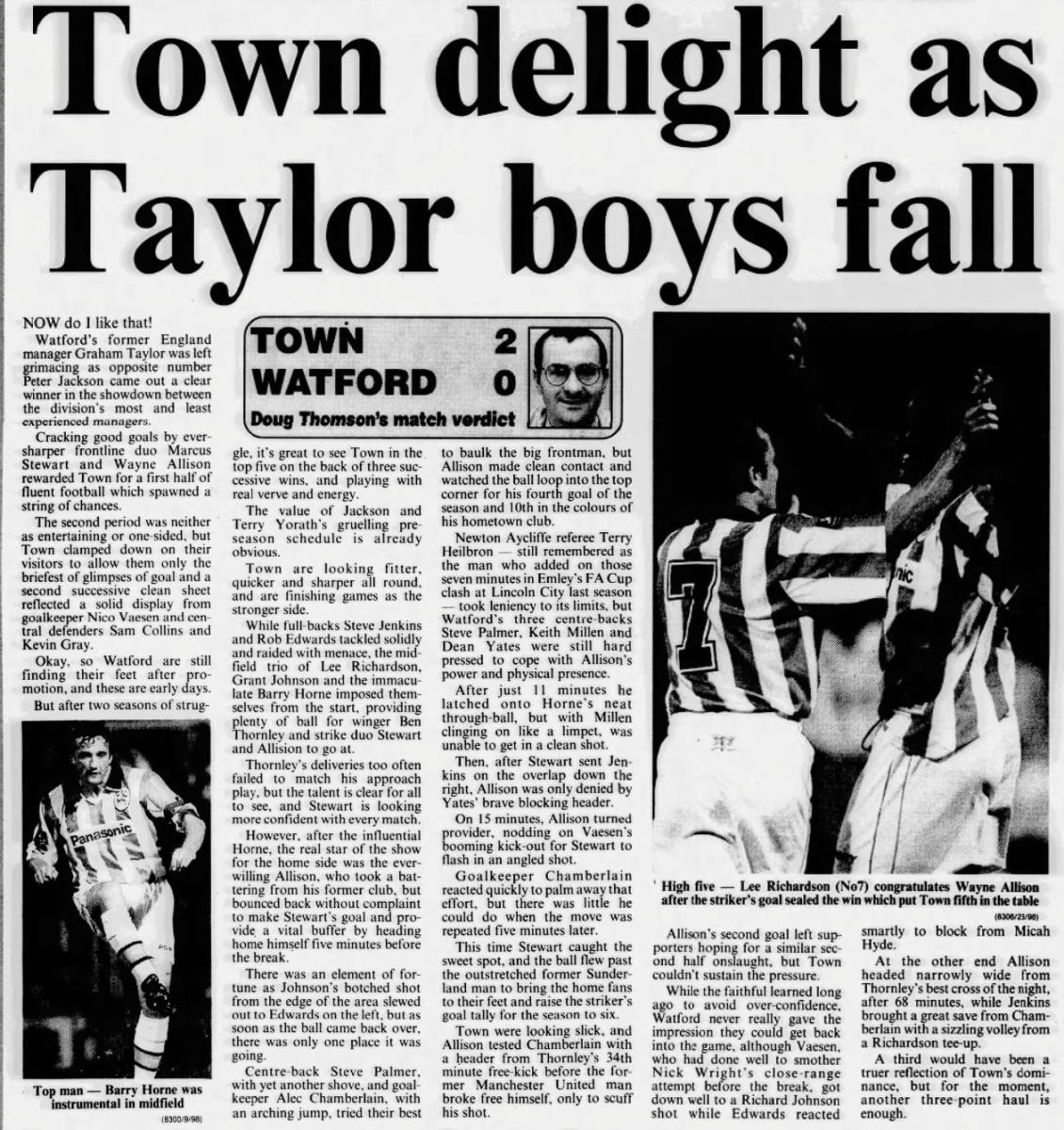 19th September 1998- New Division One, Swindon Town 1 Watford 4 https://watford.fcdb.info/index.php?page=matches Sunday Mirror, 19 Sep 1998 Sunday People, 20 Sep 1998 Share this: Share on X (Opens in new window) X Share on Facebook (Opens in new window) Facebook