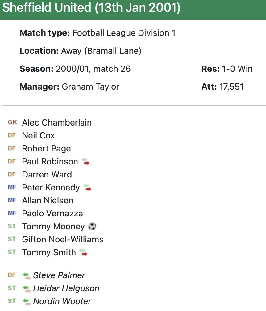 13th January 2001- New Division One, Sheffield United 0 Watford 1 Leave a Reply http://watford.fcdb.info/index.php?page=matches BSAD report: Regardless of what happens during the rest of the season, nobody’ll remember this one. You don’t get points for memories, anyway – all that matters is that we sneaked a victory in a match that never really got going until the final fifteen minutes. Share this: Share on X (Opens in new window) X Share on Facebook (Opens in new window) Facebook