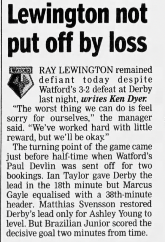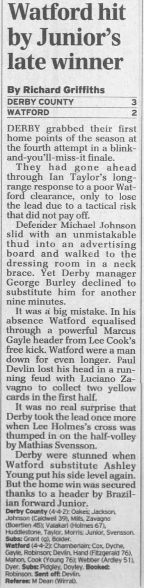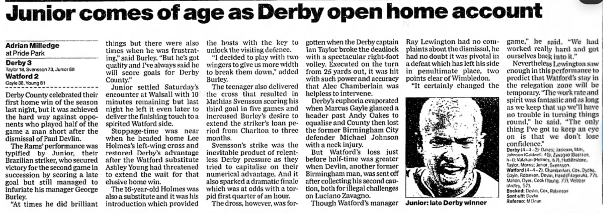 Junior, who scored Derby’s winner, would join Watford in 2006 but legal issues with his work permit prevented him from ever playing a game for us.