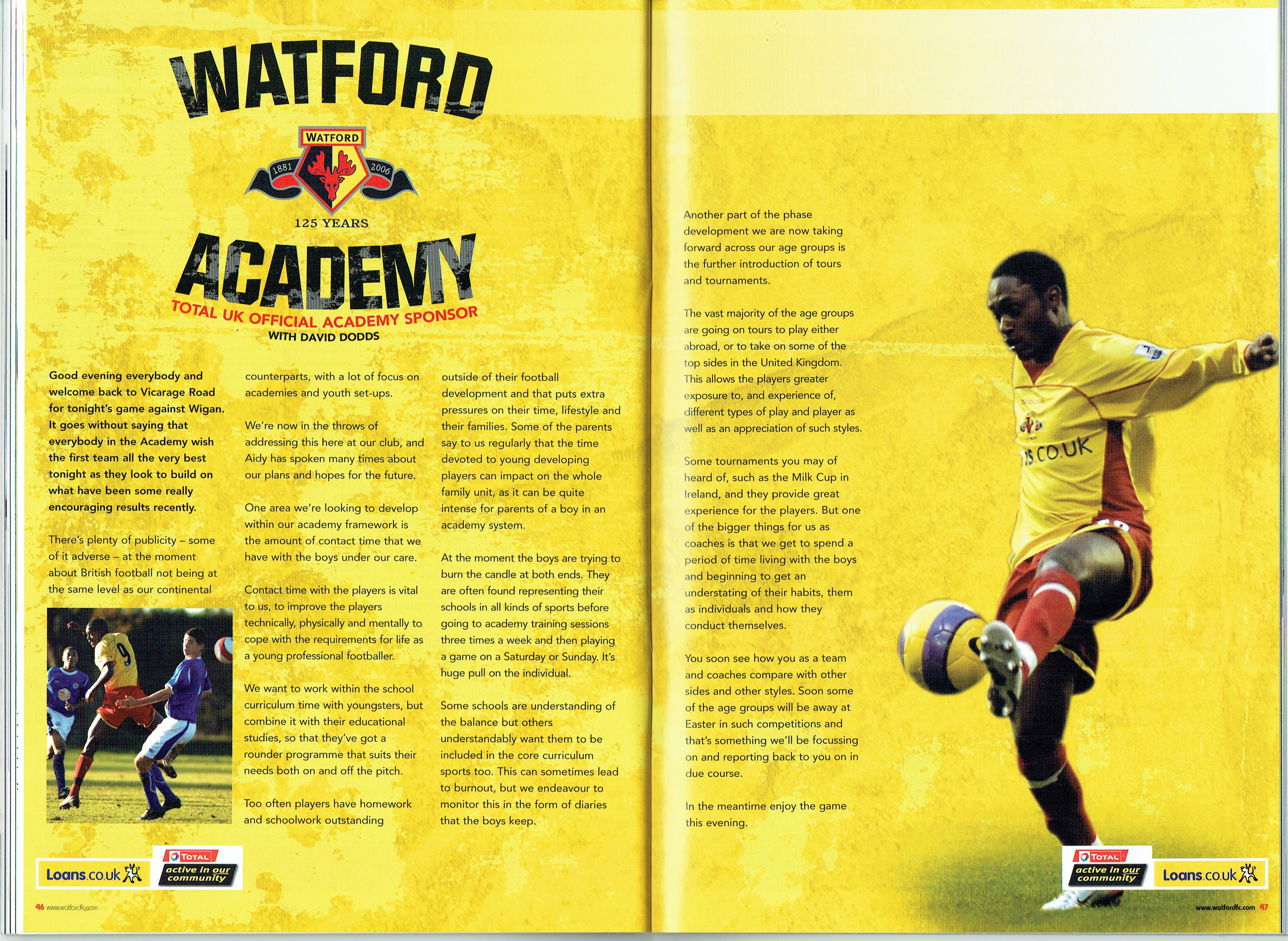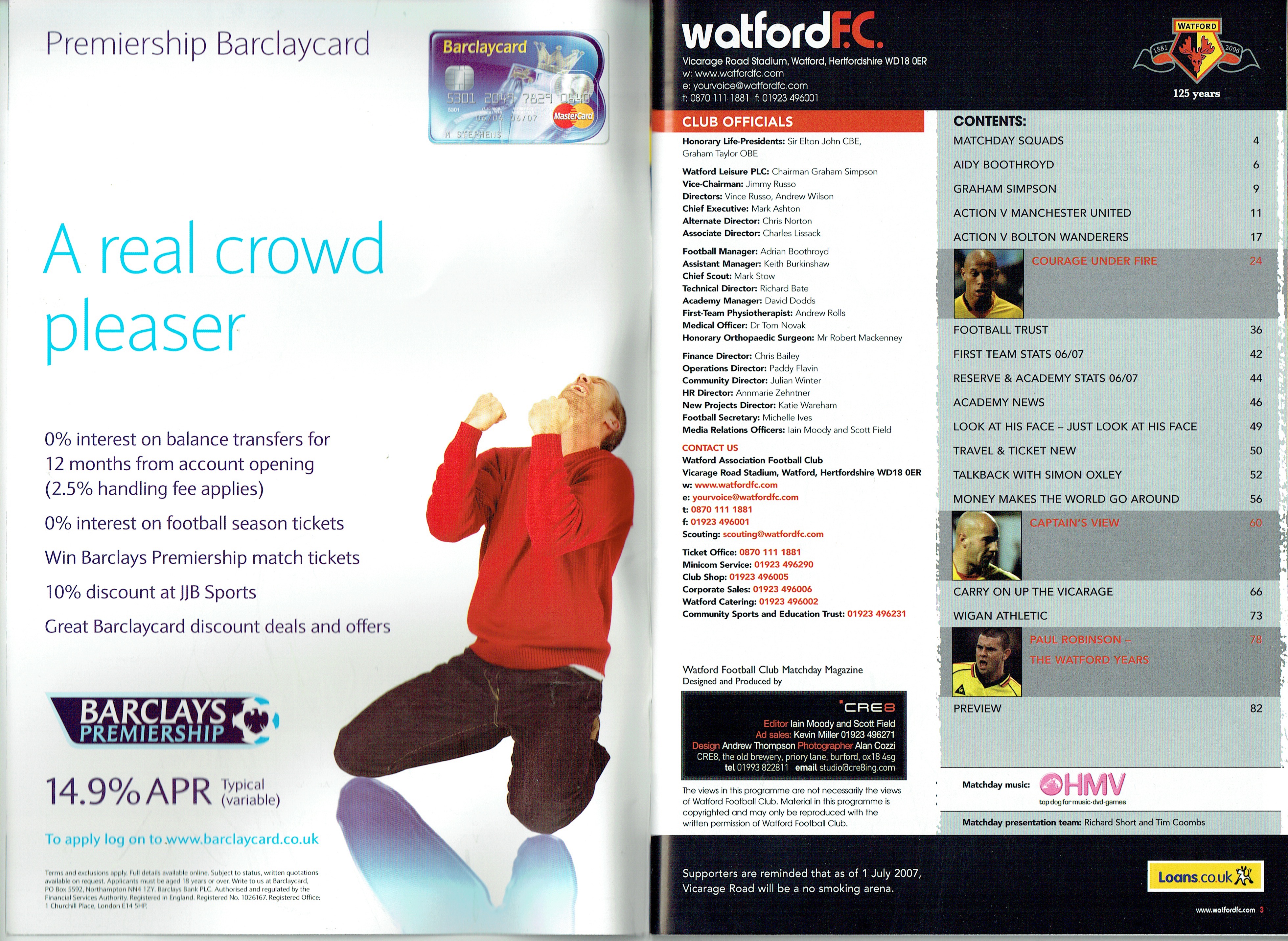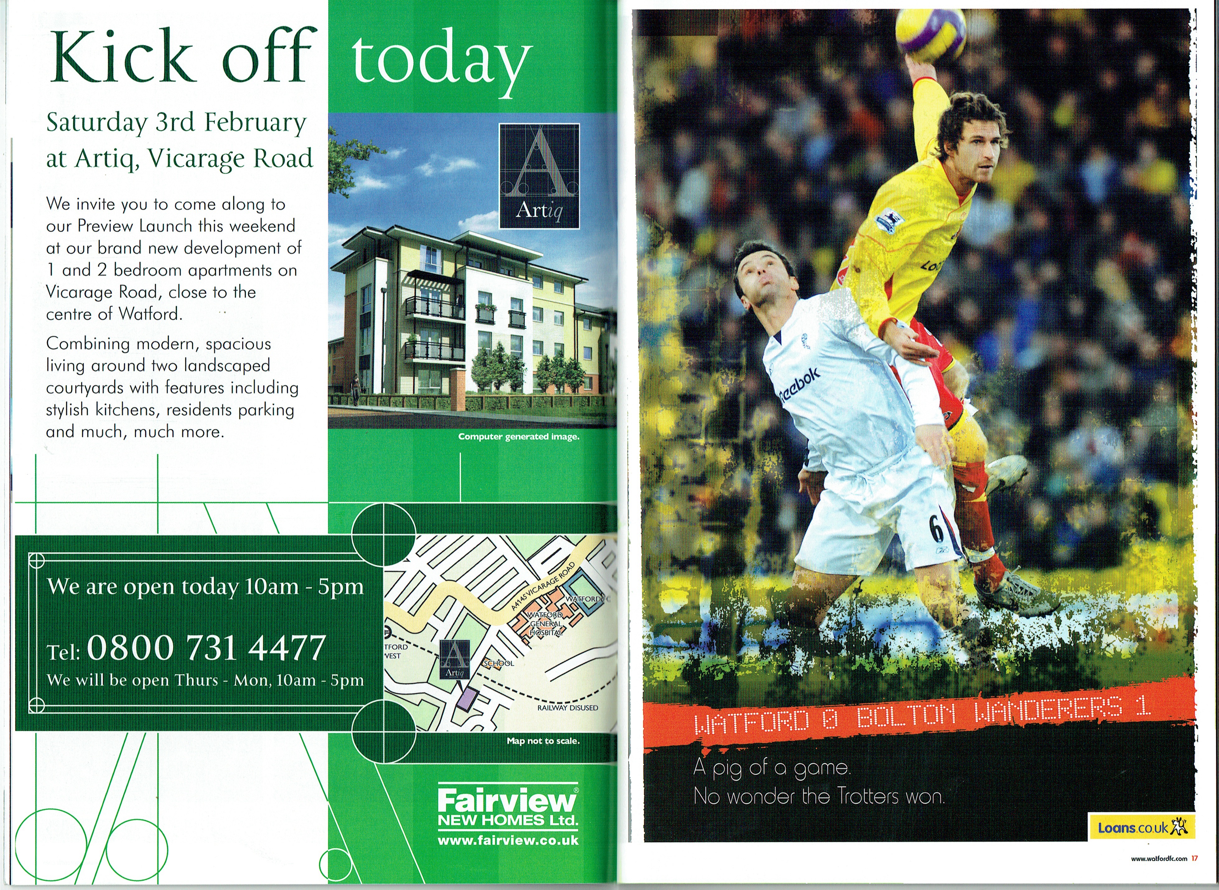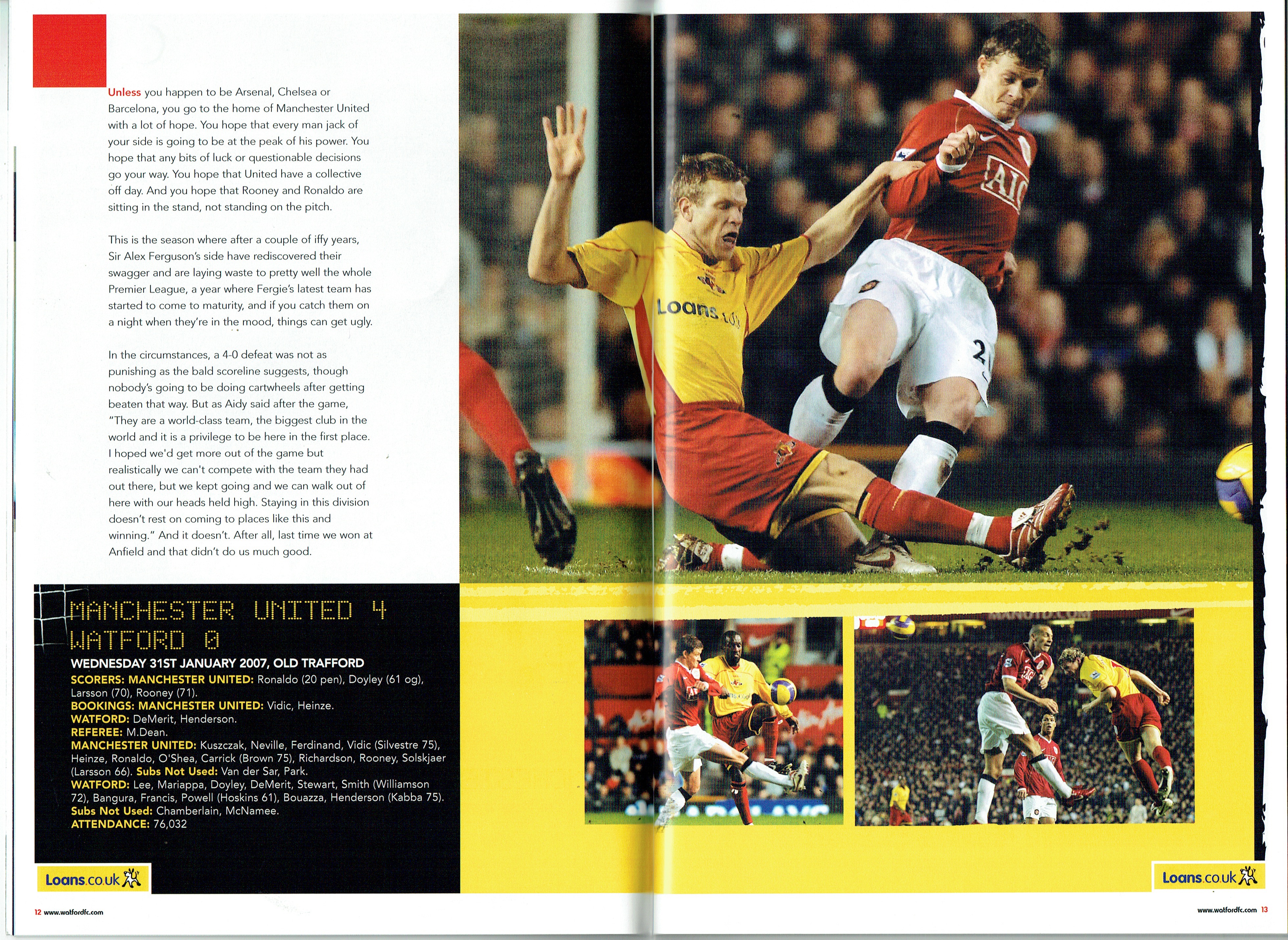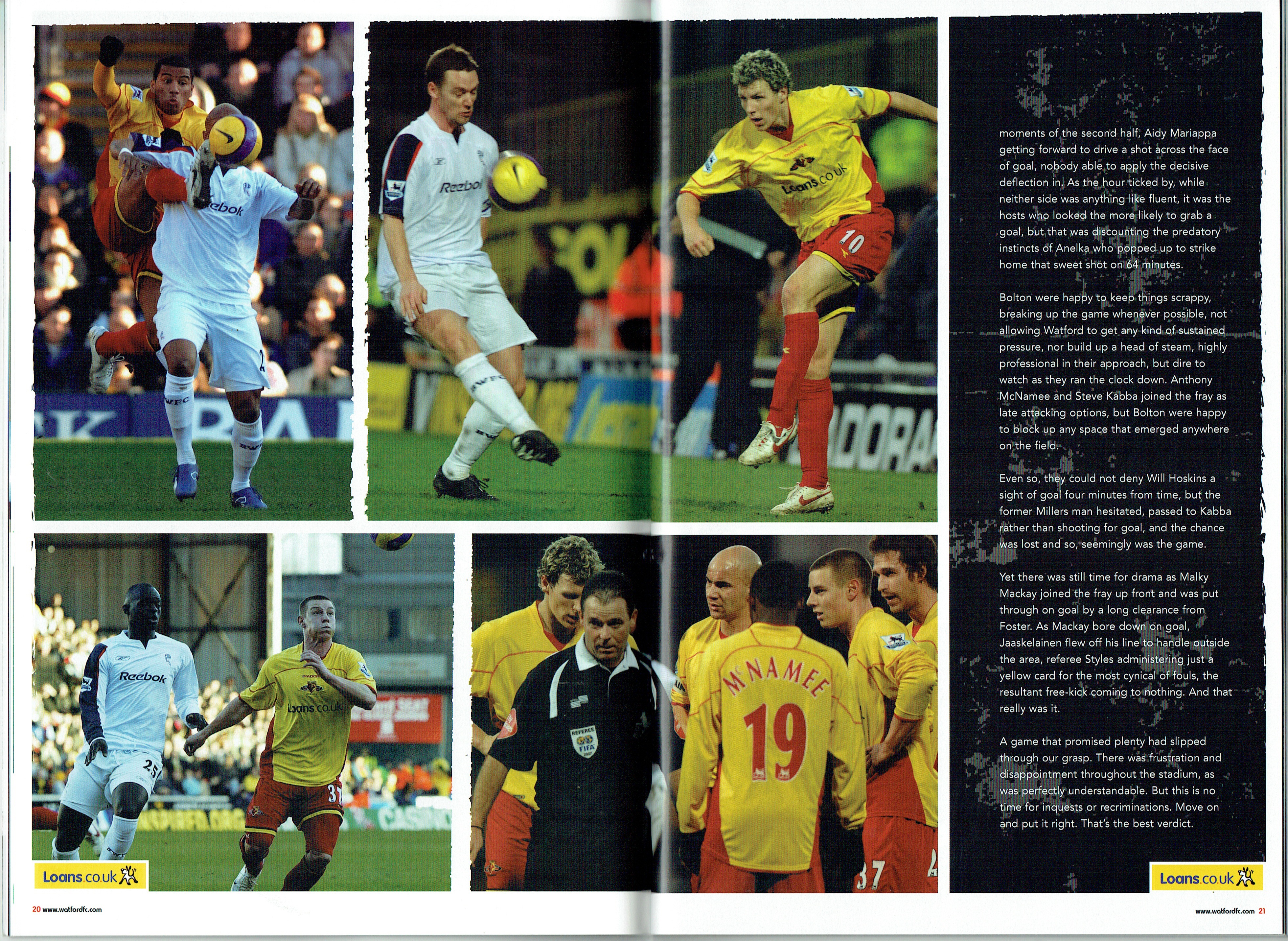 3rd February 2007- Premier League, Watford 0 Bolton Wanderers 1 Leave a Reply http://watford.fcdb.info/index.php?page=matches Nicolas Anelka’s second-half strike was enough for Bolton to battle past bottom side Watford at Vicarage Road. Rotherham is not an obvious place to dig for salvation in the Premiership. They are bottom of League One. But last month’s recruits, Will Hoskins and Lee Williamson, did not look out of place in Watford’s colours. It said as much about their new club as the normally voluble Aidy Boothroyd could manage afterwards. At the finale, two men in black overcoats stood on the sidelines. Neither exuded happiness, but Sam Allardyce at least could claim relief, having bagged his first win in five weeks. After a triumphant December yielded a manager-of-the-month award and five straight league wins, a dreadful January ensued for the Bolton manager with just two points in four games. And Vicarage Road was hardly a popular destination for Bolton, 12 visits had previously brought just one win. For Aidy Boothroyd’s side, a win, as always, was needed. There were the eight new signings to justify and the small matter of scraping the side off the bottom of the table. Preceding the midweek Manchester United whipping, Watford had managed two wins on the trot and were hoping to continue their handiwork. Independent, 4 Feb 2007 Sunday Telegraph, 4 Feb 2007 Today’s match report is: Ugly. https://www.soccerbase.com/matches/results.sd?date=2007-02-03 https://www.11v11.com/league-tables/premier-league/03-february-2007/ Share this: Share on X (Opens in new window) X Share on Facebook (Opens in new window) Facebook