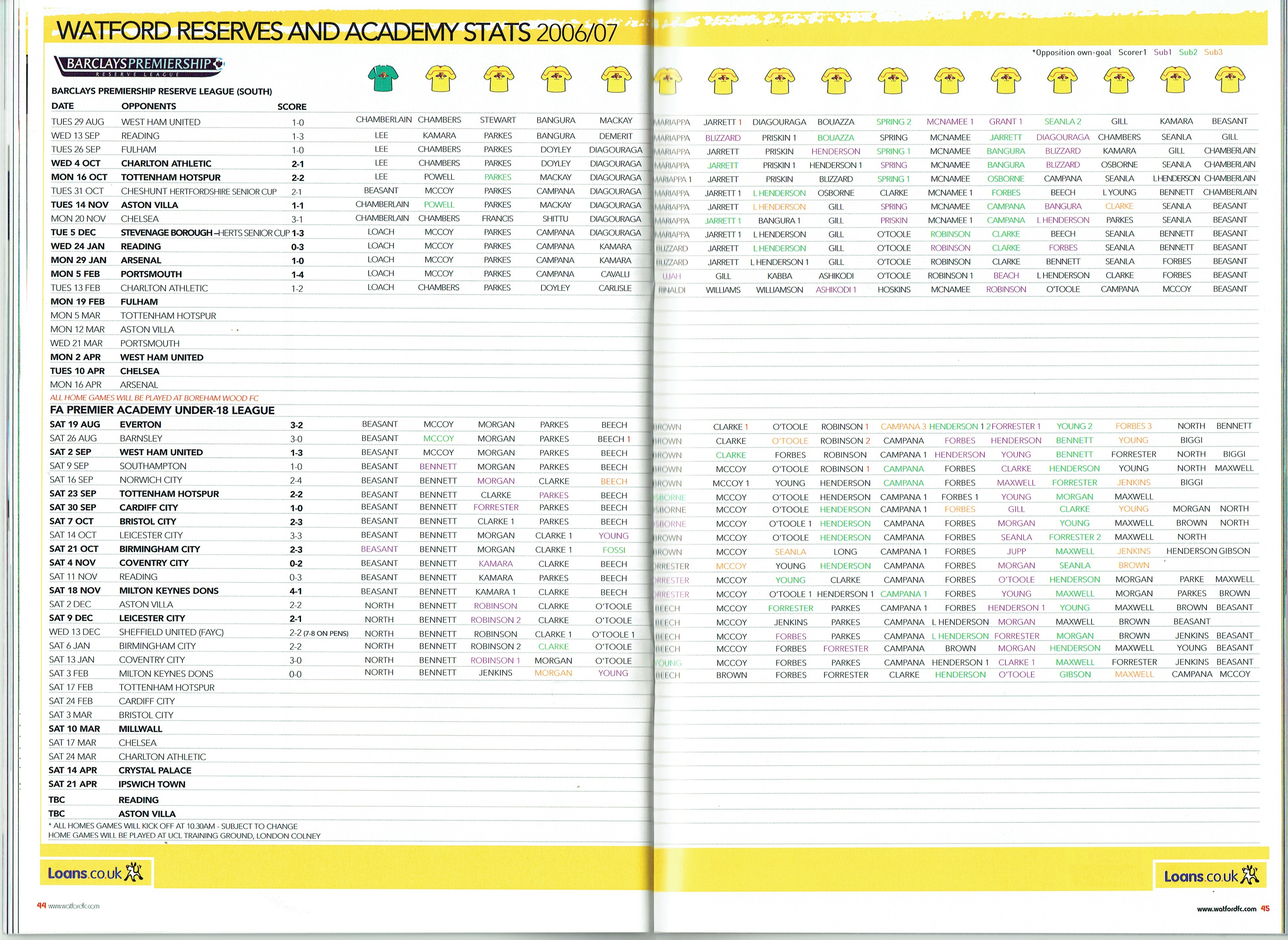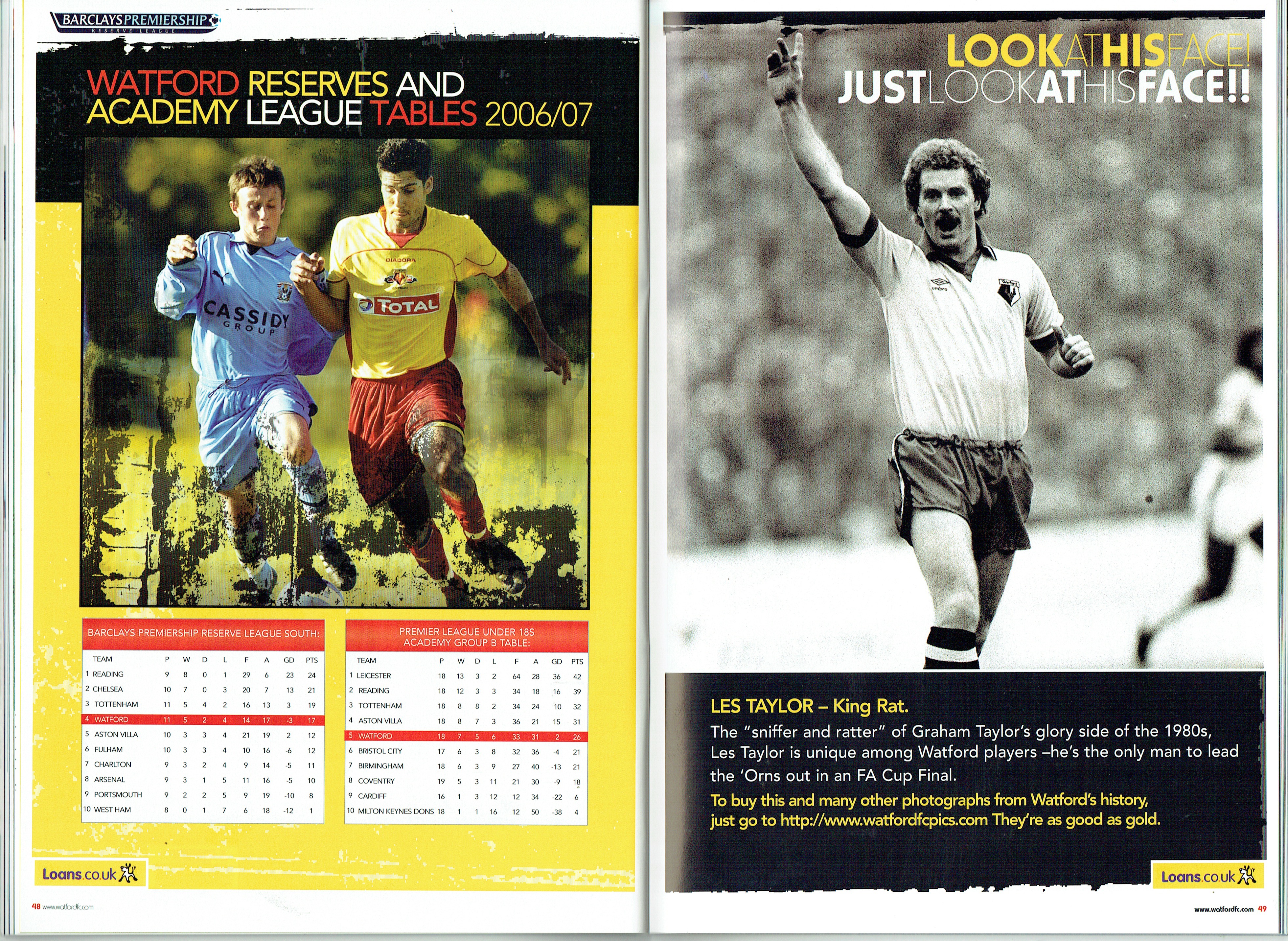 24th February 2007- Premier League, Watford 0 Everton 3 Leave a Reply Everton romped to victory to keep their push for the Uefa Cup on course and leave Watford in desperate trouble. Three successive home matches offered Aidy Boothroyd’s side a genuine opportunity to close the gap on the teams immediately above them. But the failure to overcome 10-man Wigan in midweek, followed by this setback, suggests the chance has been lost. Although there is still Charlton to come next Saturday, Watford have that sinking feeling. Boothroyd must already be examining Plan B – the one to take Watford back up next season. Goals will come easier in the Championship. Some will surely fall to the Hungarian forward Tamas Priskin, the second-half substitute who deserved one for effort alone after a shot and two headers in the space of five minutes. Your one word match report is: Eurgh. https://www.soccerbase.com/matches/results.sd?date=2007-02-24 https://www.11v11.com/league-tables/premier-league/24-february-2007/ Share this: Share on X (Opens in new window) X Share on Facebook (Opens in new window) Facebook