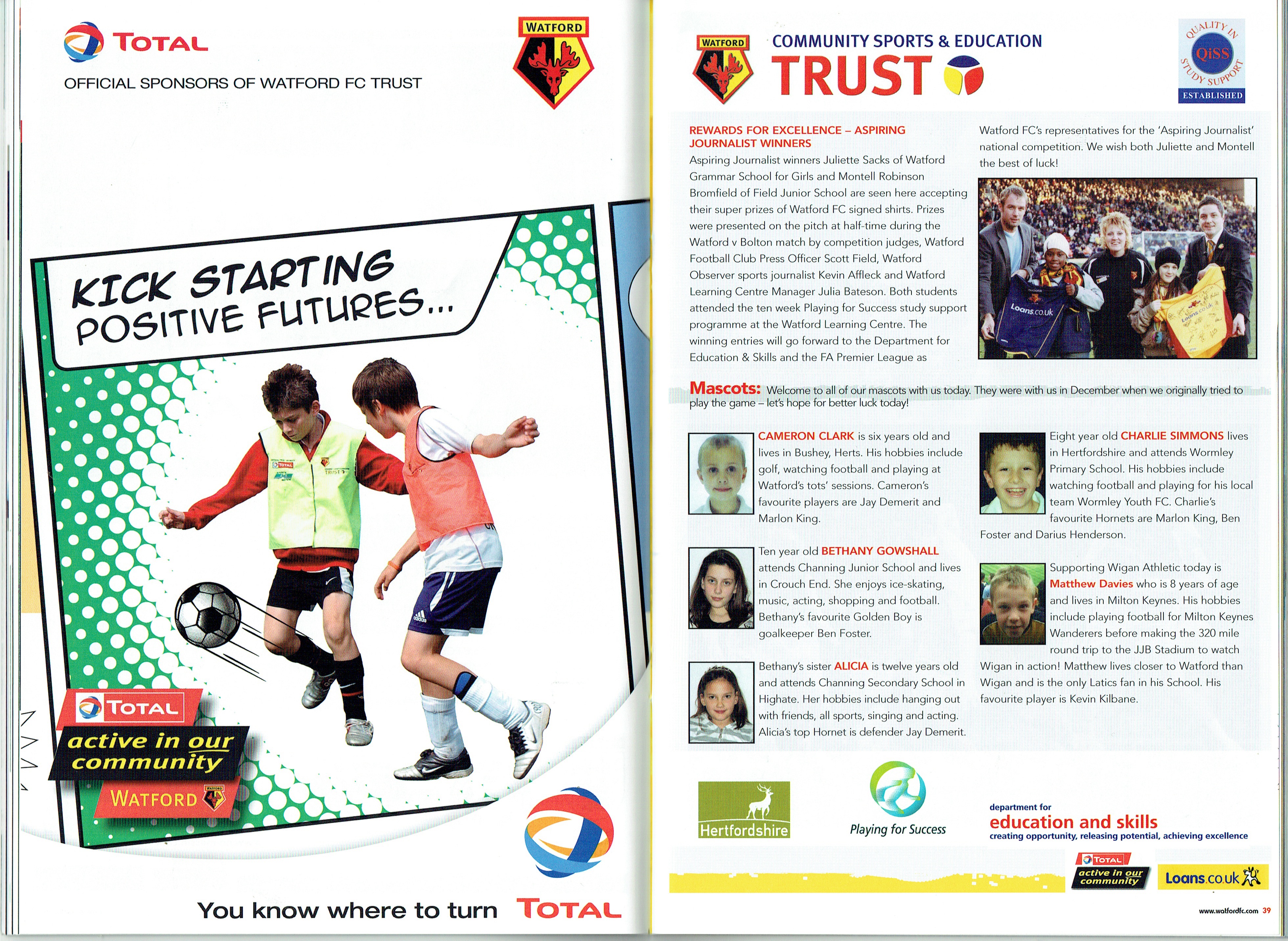 21st February 2007- Premier League, Watford 1 Wigan Athletic 1 Leave a Reply An extremely unusual event preceded Watford’s Premiership match with Wigan on Wednesday. Minutes before kick-off injured Watford striker Marlon King wandered on to the Vicarage Road pitch and, microphone in hand, made an impassioned appeal to the club’s supporters. Your one-word match report is: insufficient. Share this: Share on X (Opens in new window) X Share on Facebook (Opens in new window) Facebook
