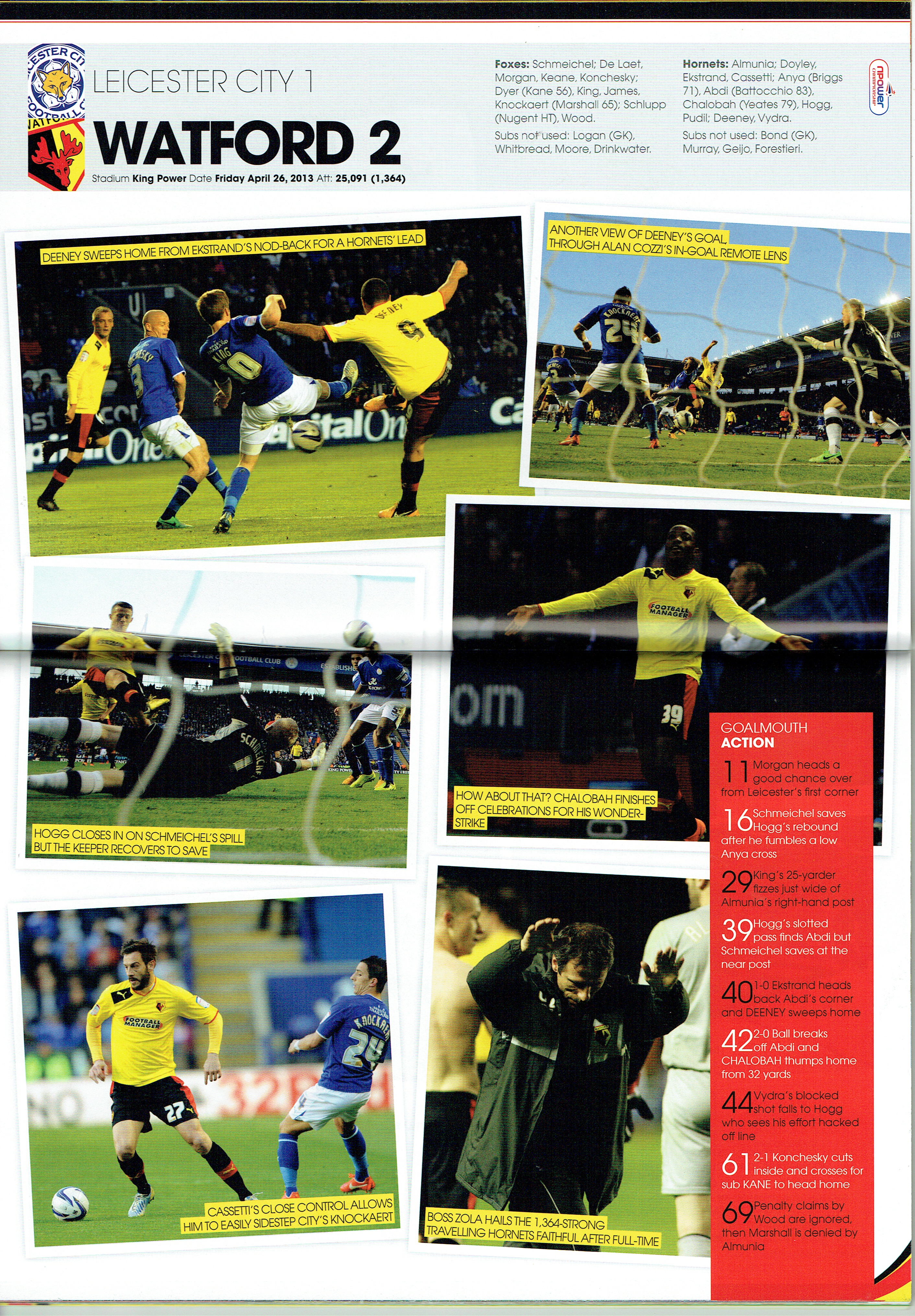 12th May 2013- Championship Playoff Semi-Final Second Leg, Watford 3 Leicester City 1 (Watford won 3-2 on aggregate)