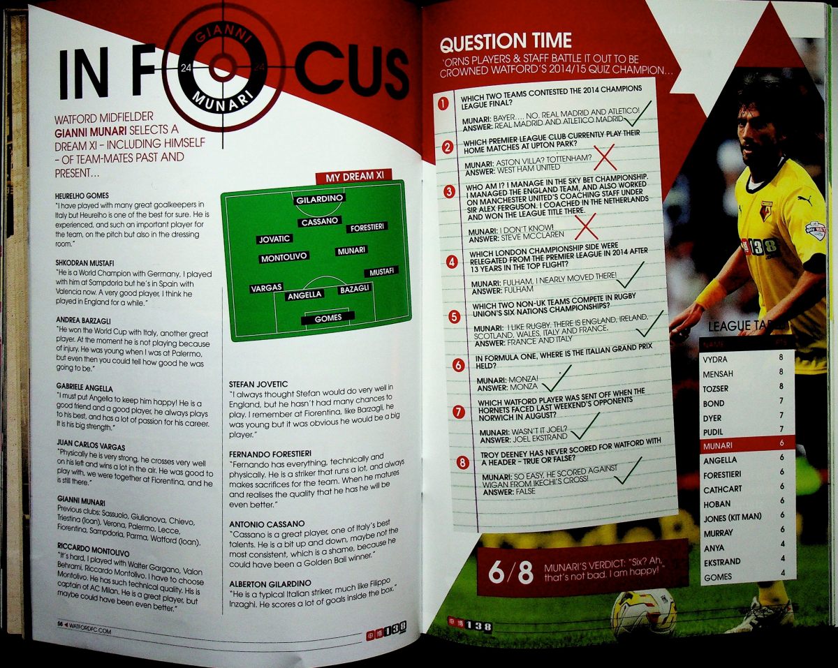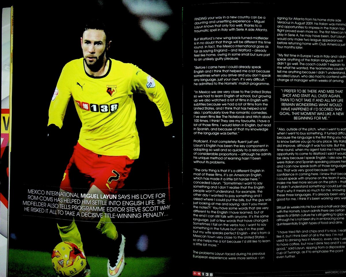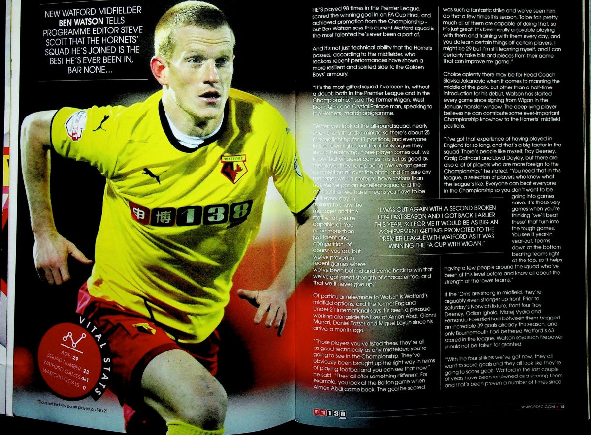 7th February 2015- Championship, Watford 1 Blackburn Rovers 0 WFC.Net goal commentary: 1 BBC: Watford striker Odion Ighalo scored his 12th goal of the season to give the Hornets victory over Blackburn. Sky: The Hornets had been marginally the better side in the first half, but they struggled against the visitors’ more direct approach after the break and needed goalkeeper Heurelho Gomes to stop them from going behind on at least two occasions. Bhappy: Blackburn dictated terms for long, long periods here, including the whole of a second half in which we barely created as much as a half-chance and, I suspect, mustered no more than one vital, decisive shot on goal. They set the agenda, they shaped the game, they’ll feel with complete justification that they should’ve won it. They were well-organised, robust and physical, and a bit charmless in a way that I find oddly charming; these kind of Championship gurners are gradually dying out, and more’s the pity. In Chris Brown, they had a proper old-fashioned villain of a centre forward, all bad-temper and elbows, whose only failure in the service of his side was to miss the couple of chances that came his way. In Jay Spearing, whose resemblance to one of the boulder-trolls from Frozen is uncanny, they had a proper midfield hatchet man, treading the kind of disciplinary tightrope that any midfielder worth his salt ought to spend his career walking. The rest aren’t exactly shrinking violets. There’s something Victorian and industrial about them, and I’ll regret the day when our legion of continental fancy-dans doesn’t have to overcome this kind of challenge. They’re a good side. Not a nice one, but a good one. Fran’s Watford Blog: In a rare Watford attack, Vydra exchanged passes with Deeney and tried a shot that was blocked, it fell to Paredes who played it out to Deeney whose shot was put out for a corner. Watford then took an unexpected lead as Layun’s set piece was played on by Angella to Ighalo whose shot found the net by way of Steele’s hand and the post. The celebration of this miracle included a very long prayer from the goalscorer. Blackburn tried to hit back and there was a moment of drama as Gomes punched a cross then chased the ball out of the box to welly it over the SEJ stand to loud cheers from the Watford faithful. Watford appeared to have increased their lead in the final moments as Vydra and Ighalo broke forward and the Czech won a corner from which a cross was headed home by a defender as Ighalo challenged, but the goal was ruled out for offside presumably as Ighalo was deemed to be interfering with play. There were huge cheers at the final whistle. It had been a difficult game and the win was hardly deserved, but Blackburn had been such unpleasant opponents that I felt no guilt. It was no surprise that Gomes won the man of the match award and he was given a tremendous ovation as he did his lap of the pitch applauding the crowd at the end. https://www.bbc.co.uk/sport/football/31070467 Share this: Share on X (Opens in new window) X Share on Facebook (Opens in new window) Facebook