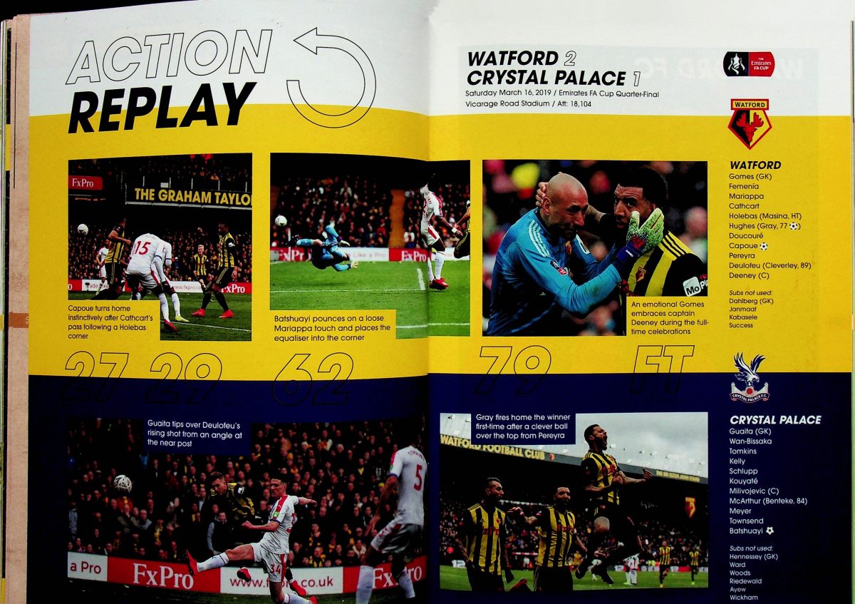 Watford and Crystal Palace going head to head in FA Cup quarter final