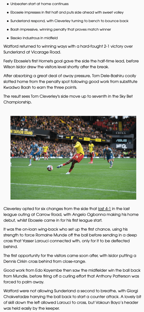 Watford Observer: RECAP: Watford 2 Sunderland 1