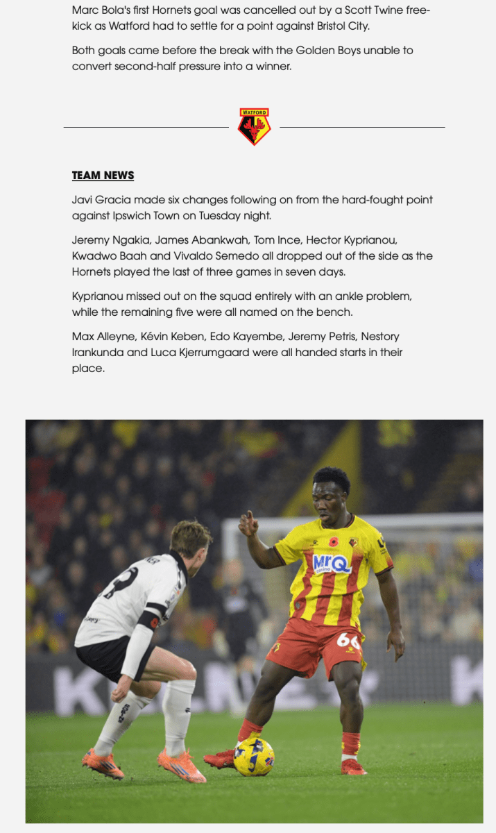 Match Report: Watford forced to settle for 1-1 draw with Preston